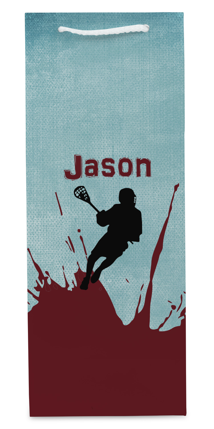This design has a cool blue background with a literal splash of maroon. Your personalization goes above the lacrosse player silhouette. The movement in this design gives the perfect feeling for a sports design.