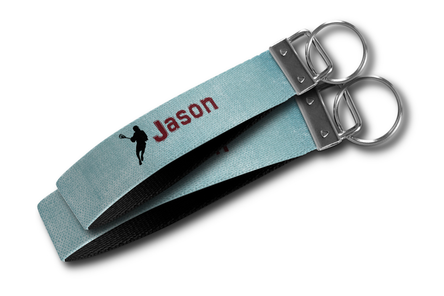 These key fob keychains are made from a polyester weave, right here in the USA. They feature a silver, metal clasp, attached to a round keyring. The piece gives the personalized wristlet a beautiful, finished look. Your customized design is printed on the outside of the keychain strap. We carry these wristlets in two sizes: small, which is 5 inches in width, and large, which is 5.5 inches in width.