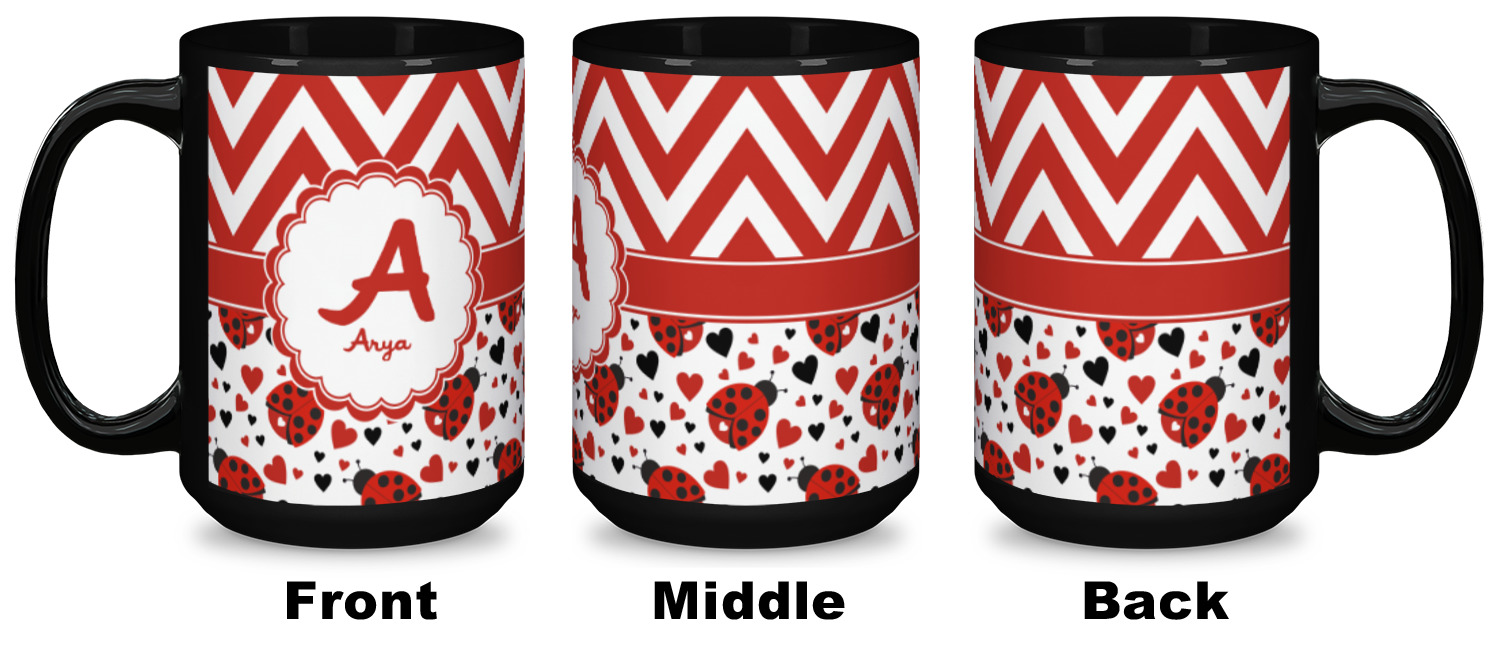 Our ceramic mugs have your design or photo printed along the surface with a gloss finish. The ceramic material of our mugs is dishwasher and microwave safe so you can reheat your tea or coffee if needed! We offer two different base colors with multiple mug sizes. The white ceramic mugs come in three size options - 11 oz., 15 oz., and 20 oz. Our black ceramic mugs are sold in either 11 oz. or 15 oz. sizes.