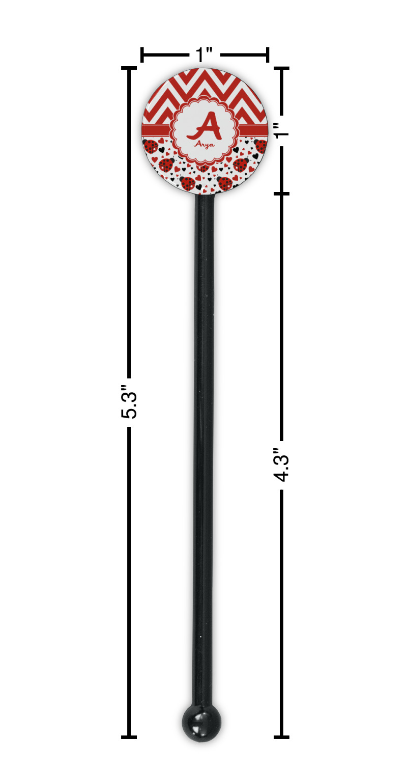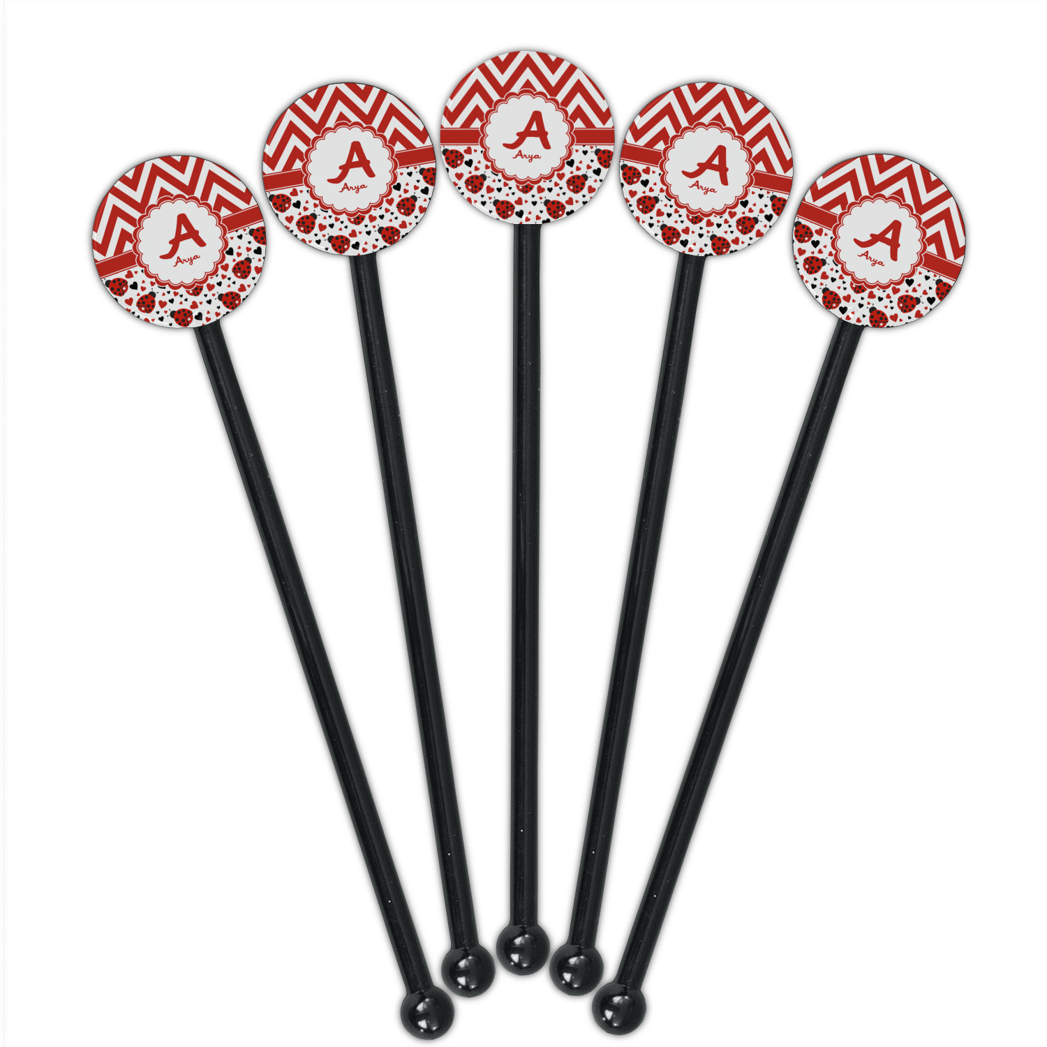 Shape + Symbol Designs for 5.5" Round Plastic Stir Sticks - Black - Double-Sided