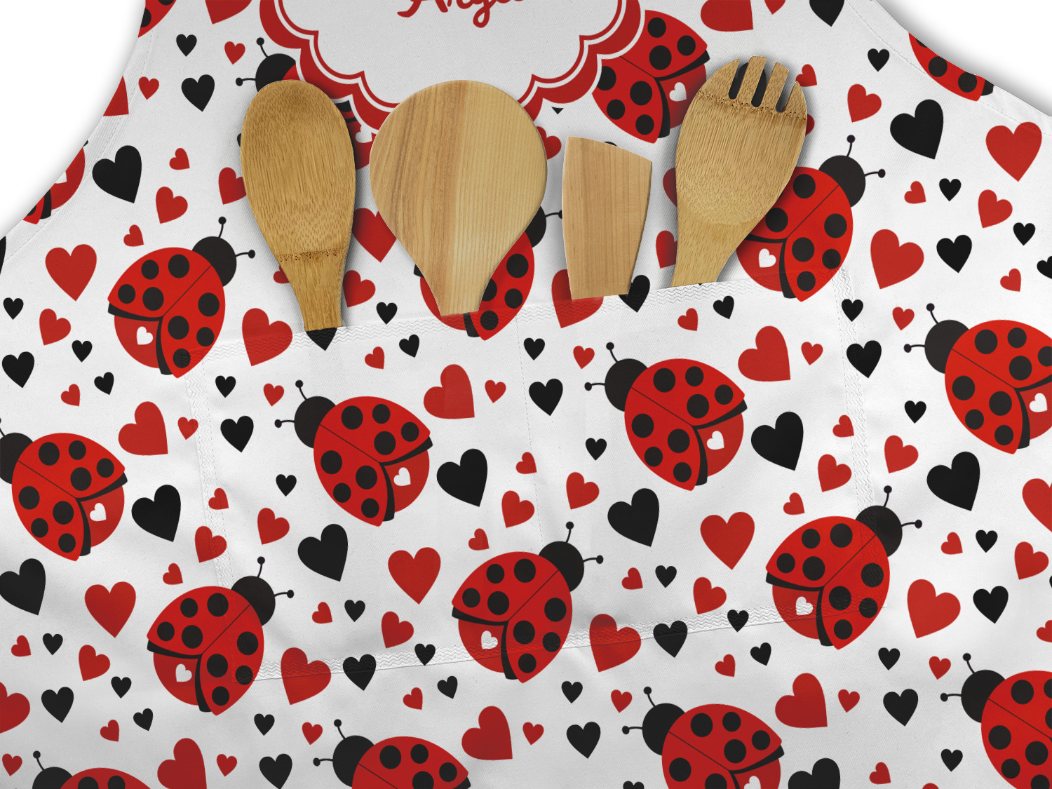 Our aprons are a lightweight yet durable polyester material. We offer two styles of aprons, one without pockets and one with two pockets adorning the center near the waistline. Each apron is one size* and comes with adjustable straps for both the neckline and waist. We print your custom design on the front of the apron to display your creativity!