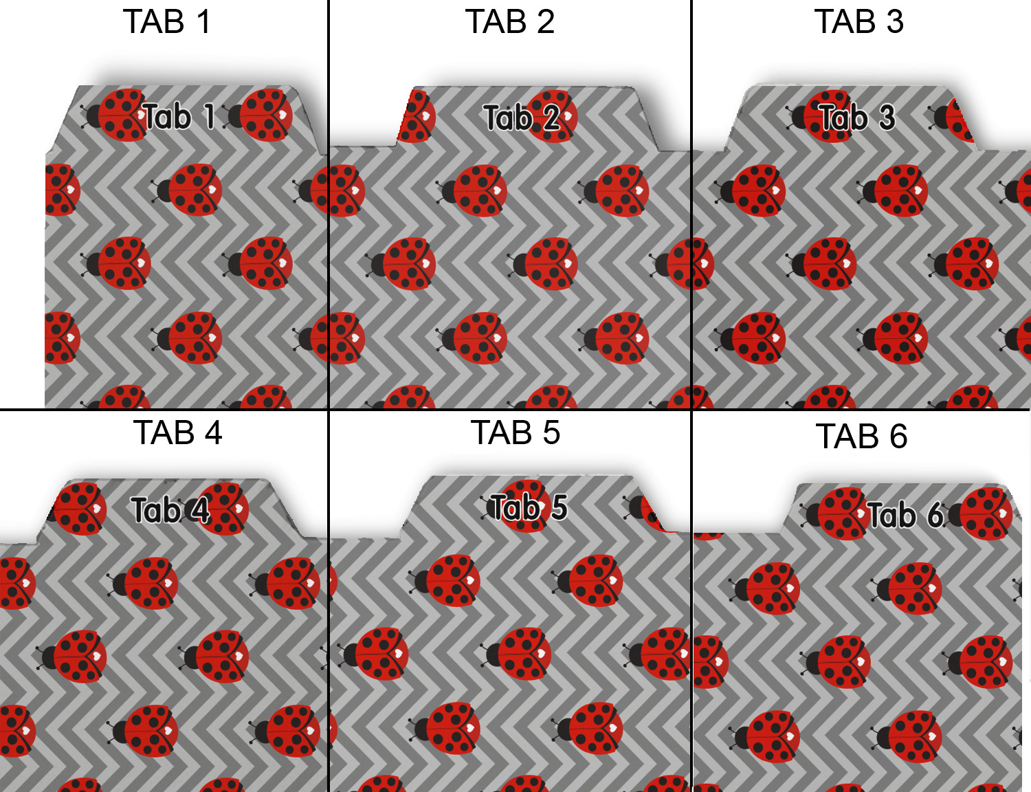 Whether you use binders at school or at work, we have designs to suit all of them. Available in 5 or 6 tab sets, you are sure to find a set to suit your needs. The back of each one is white and can be used to take notes, write vital information on, etc.
