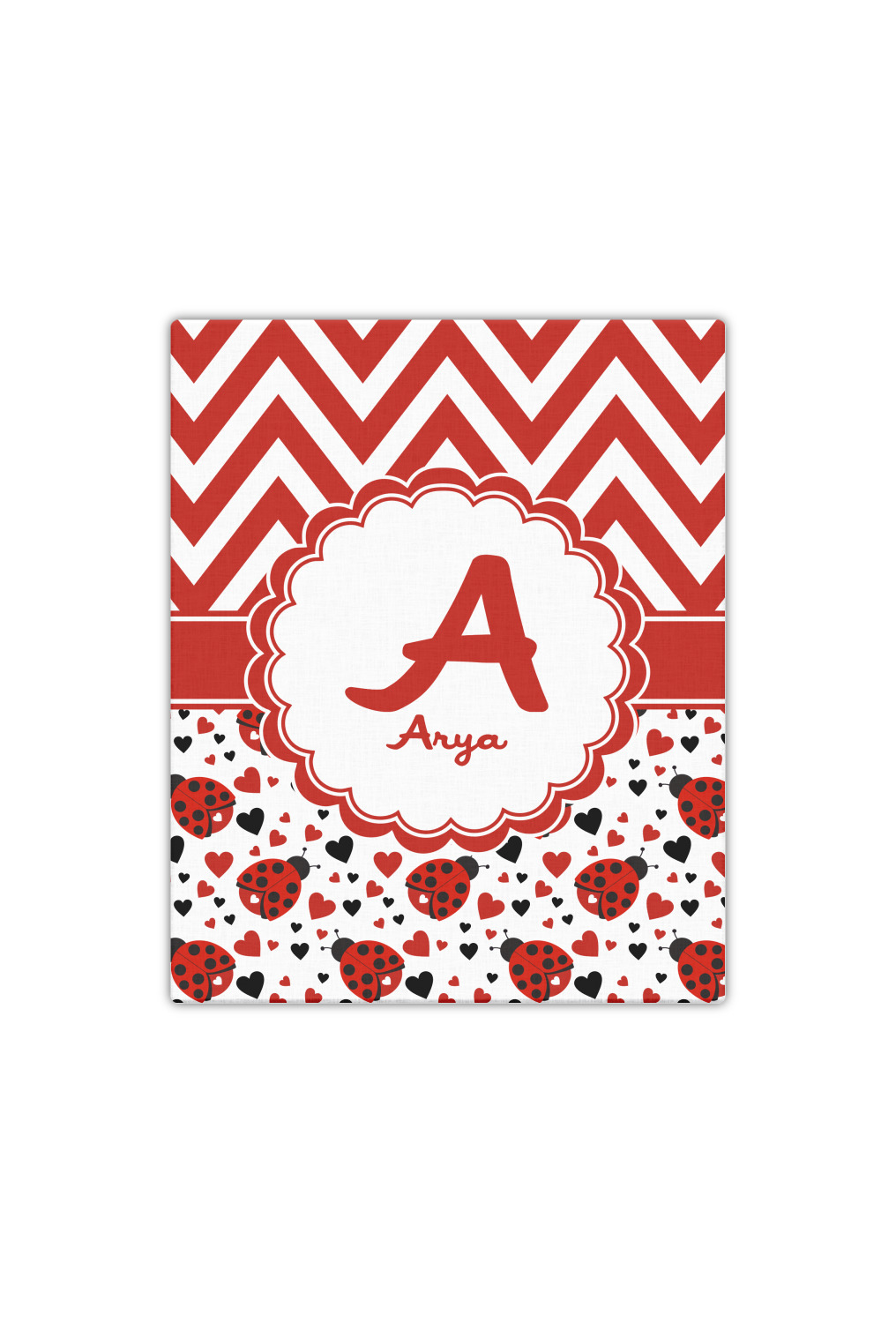 Ladybugs are traditional and loved by all. We have taken the classic ladybug and modernized her to give her an all new vibe. Chevron is the new go to pattern. We have created this gorgeous and bold red and white chevron pattern on top but grounded this bold pattern with our sweet little heart ladybugs. Old meets new and it goes so well together.
