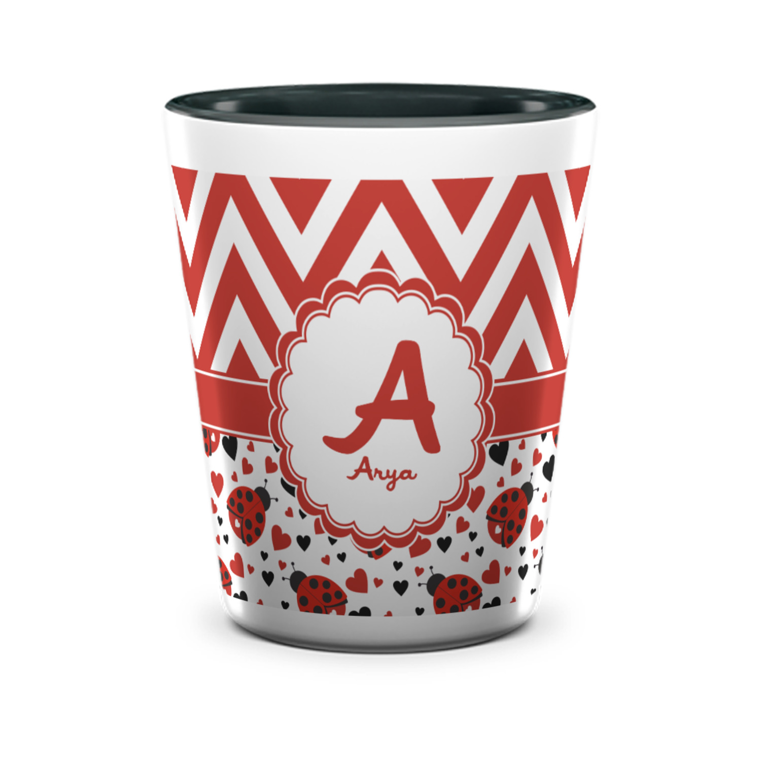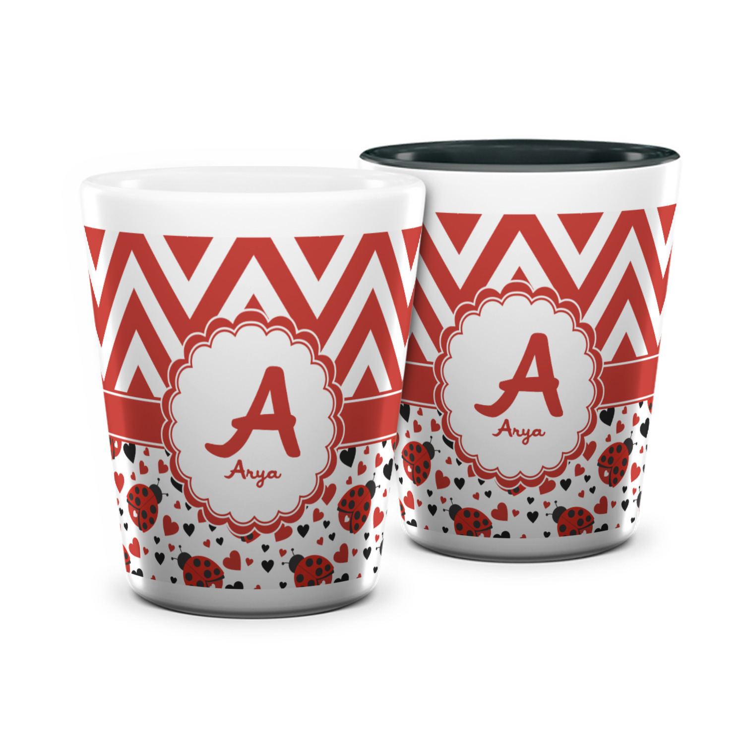Made from ceramic these shot glasses are printed in full color with the design of your choice. These are a standard 1.5oz size and stand 2.25" tall. Available in a full white ceramic or a two-tone with a black color inside the shot glass. Buy a single or a set of 4, all of which can be designed separately to get you just what you want and need.