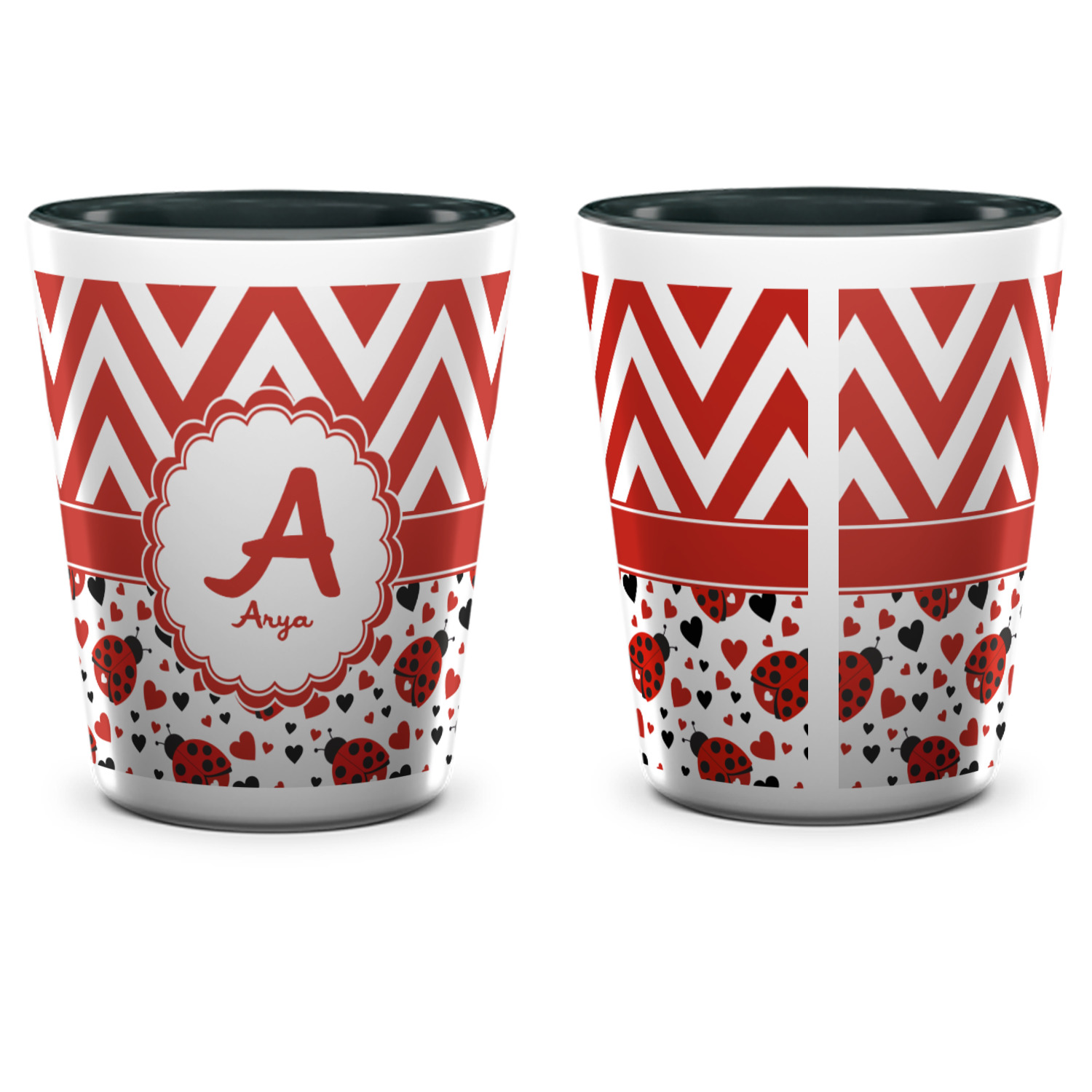 Made from ceramic these shot glasses are printed in full color with the design of your choice. These are a standard 1.5oz size and stand 2.25" tall. Available in a full white ceramic or a two-tone with a black color inside the shot glass. Buy a single or a set of 4, all of which can be designed separately to get you just what you want and need.