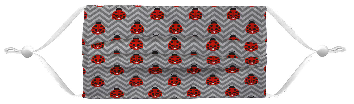 These fun face masks are 7" wide and 3.5" high. They feature pleats, adjustable ear loops, and are made with two layers of fabric. The top layer where your design is printed is a breathable polyester sheeting, while the inside layer is a soft microfiber polyester