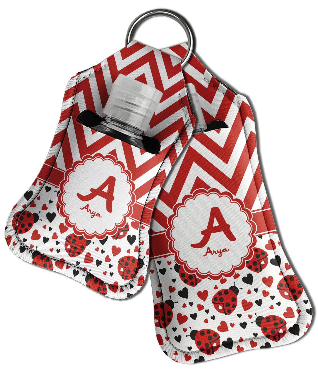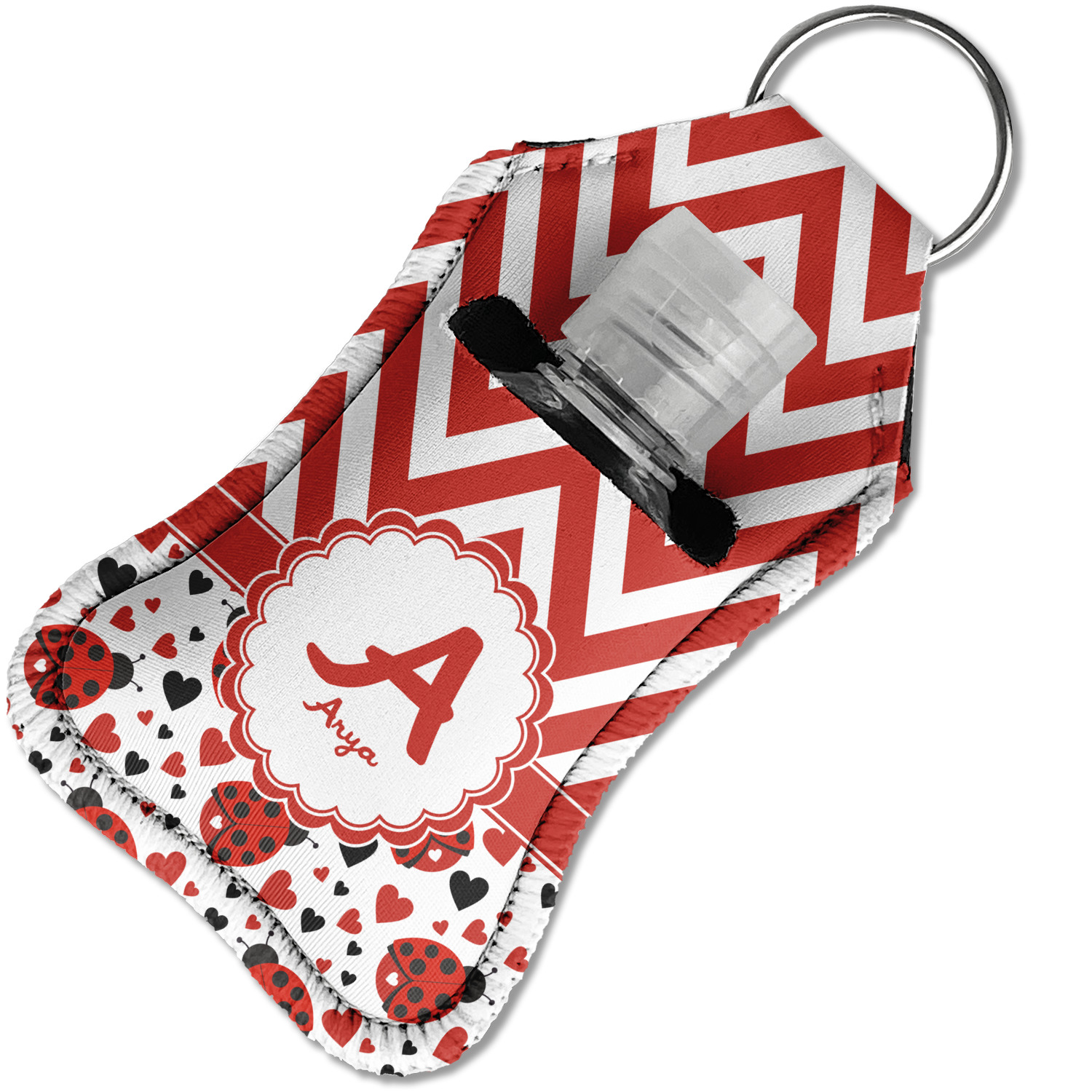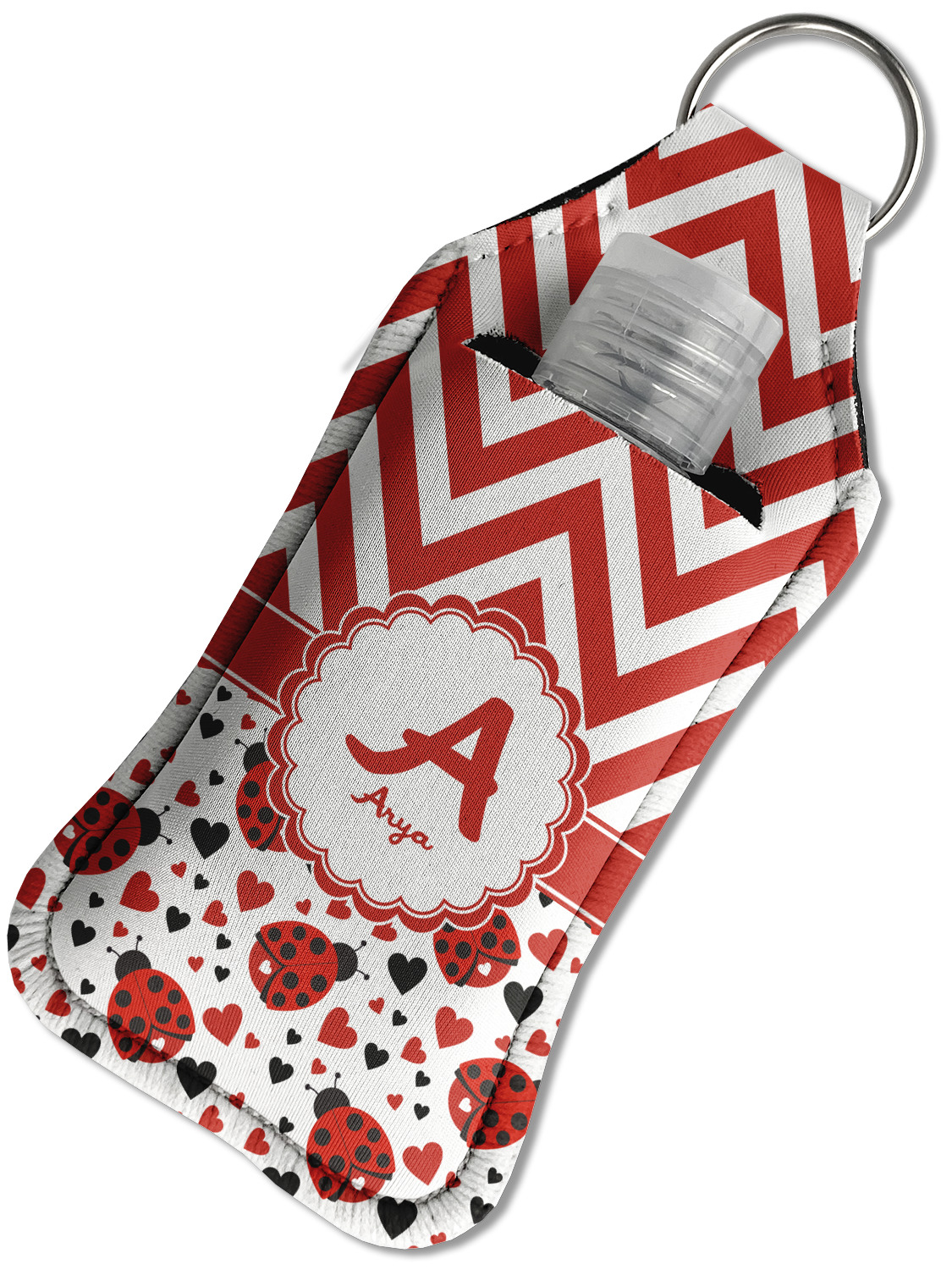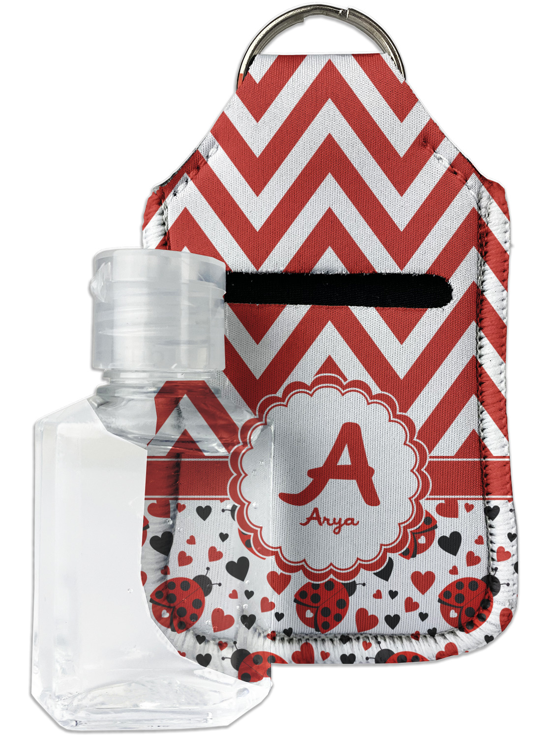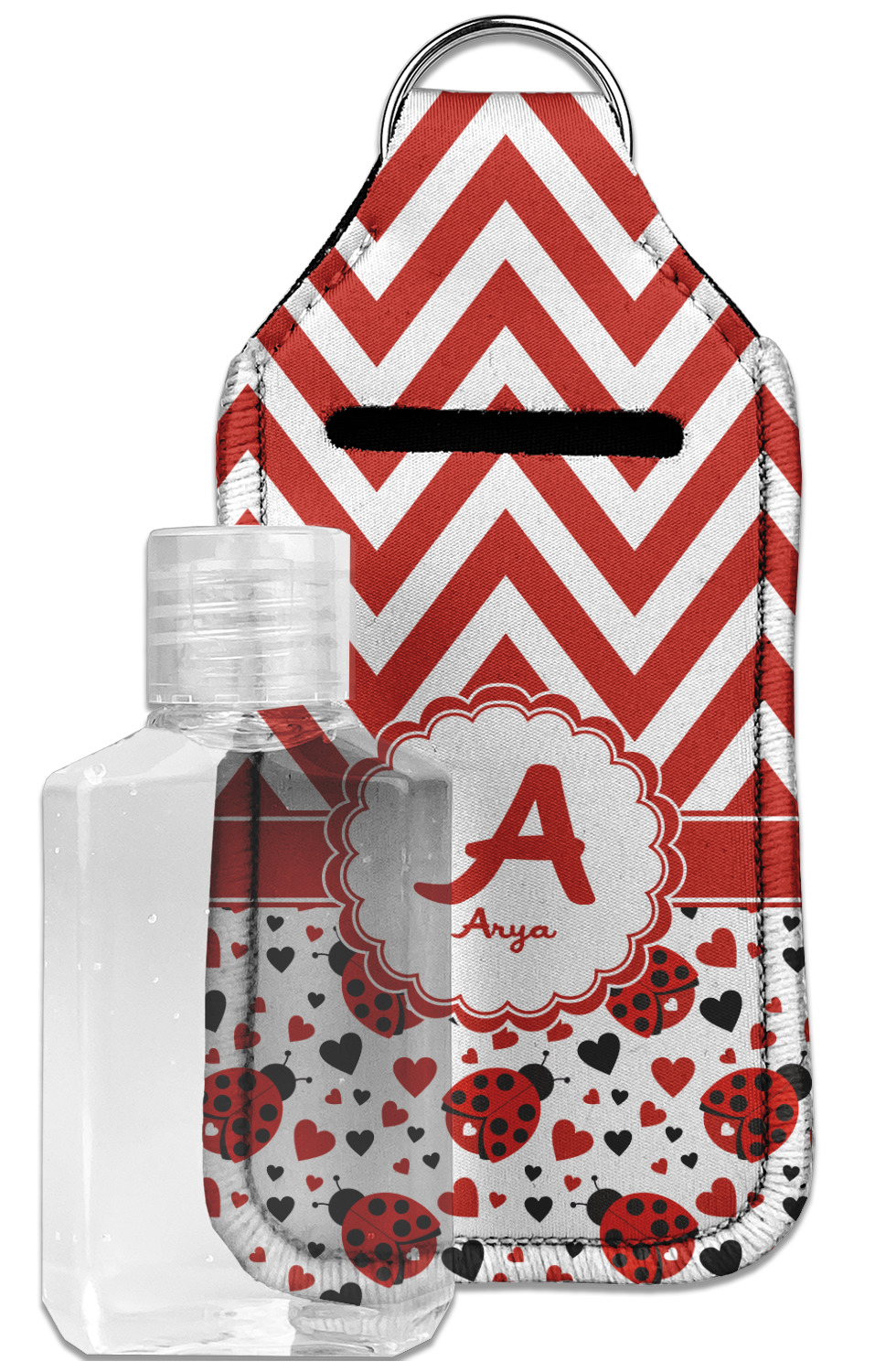Each hand sanitizer holder comes with its own empty travel-sized, refillable hand sanitizer sure to fit snug in your customized sanitizer case! Our hand sanitizer cases are a durable, yet soft neoprene material sure to last any daily activities or travel agenda. Customize and personalize a hand sanitizer bottle holder with one of our two sizes - small (4.25" x 2.25") or large (5.5" x 2.5"). Each travel sanitizer holder comes with a keyring for attachment on bags, keys, or more!
