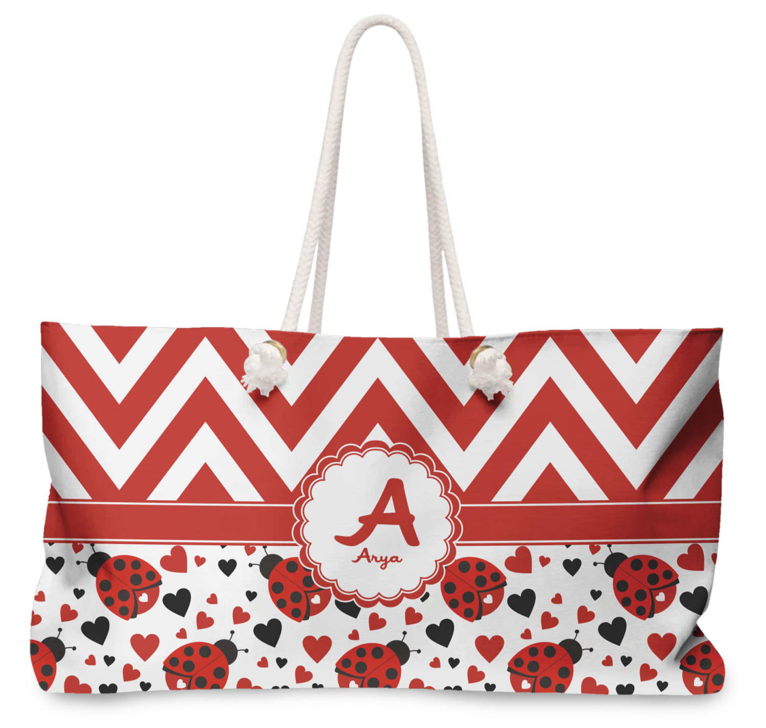 Ladybugs are traditional and loved by all. We have taken the classic ladybug and modernized her to give her an all new vibe. Chevron is the new go to pattern. We have created this gorgeous and bold red and white chevron pattern on top but grounded this bold pattern with our sweet little heart ladybugs. Old meets new and it goes so well together.