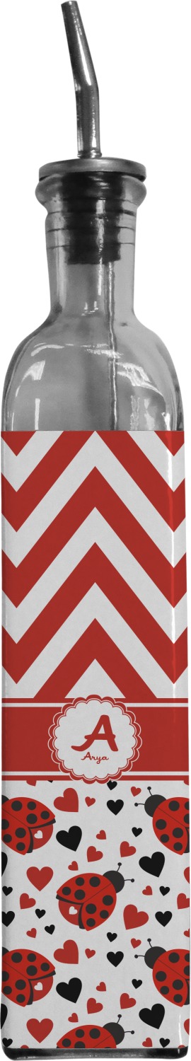 Made from recycled glass in Spain, these oil bottles have a classic, delicate look, and are accompanied by a metal spout for controlled pouring. Each bottle holds approximately 13 ounces and measures at 12 by 2 inches. We customize your glass oil bottle by applying your personalized design on the front and sides, using an adhesive. Our customizable stickers are made from high quality, gloss vinyl and are printed with waterproof, eco-solvent inks. These pieces are machine cut for accuracy and symmetry. The result is a robust, waterproof, adhesive decal that will not fade or deteriorate with time.