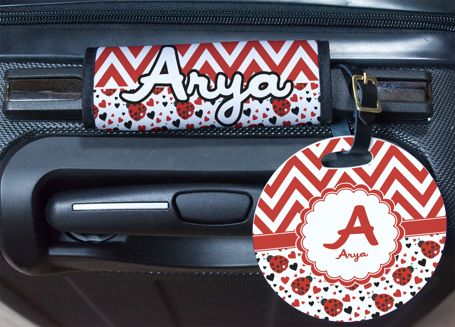 | SKU | mi-round-luggage-tag+Ladybugs-Chevron |