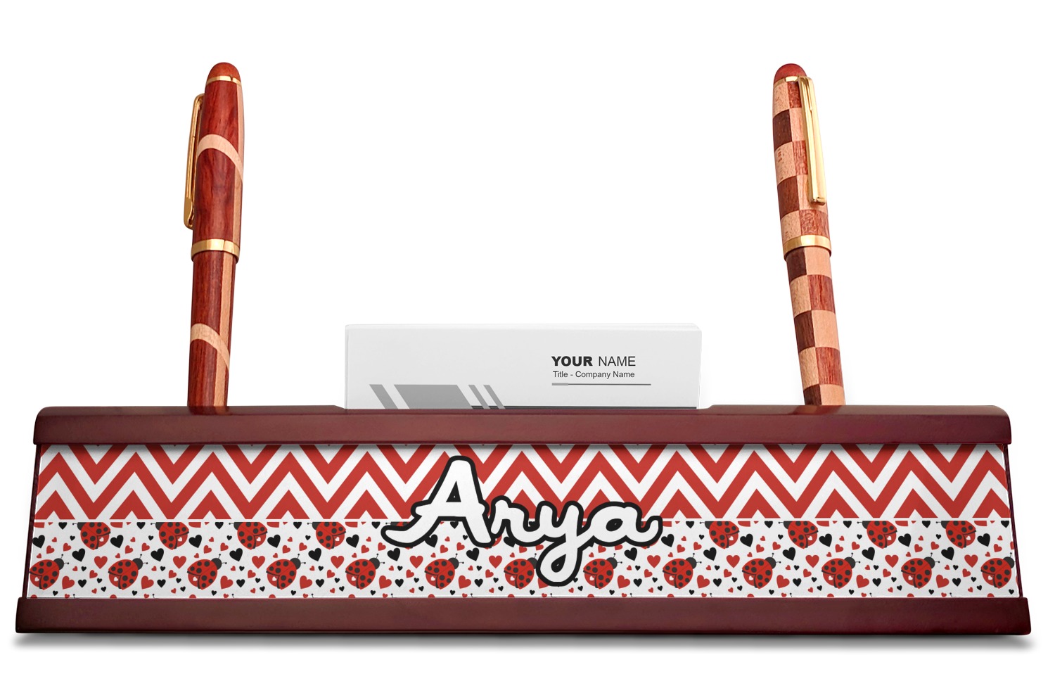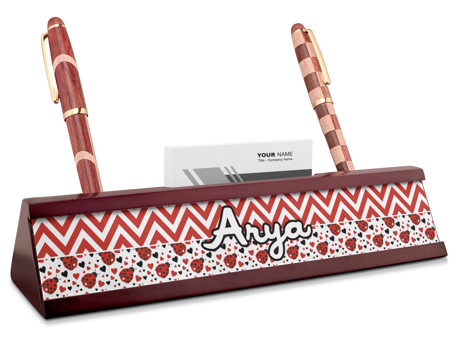 Shape + Symbol Designs for Red Mahogany Nameplates with Business Card Holder