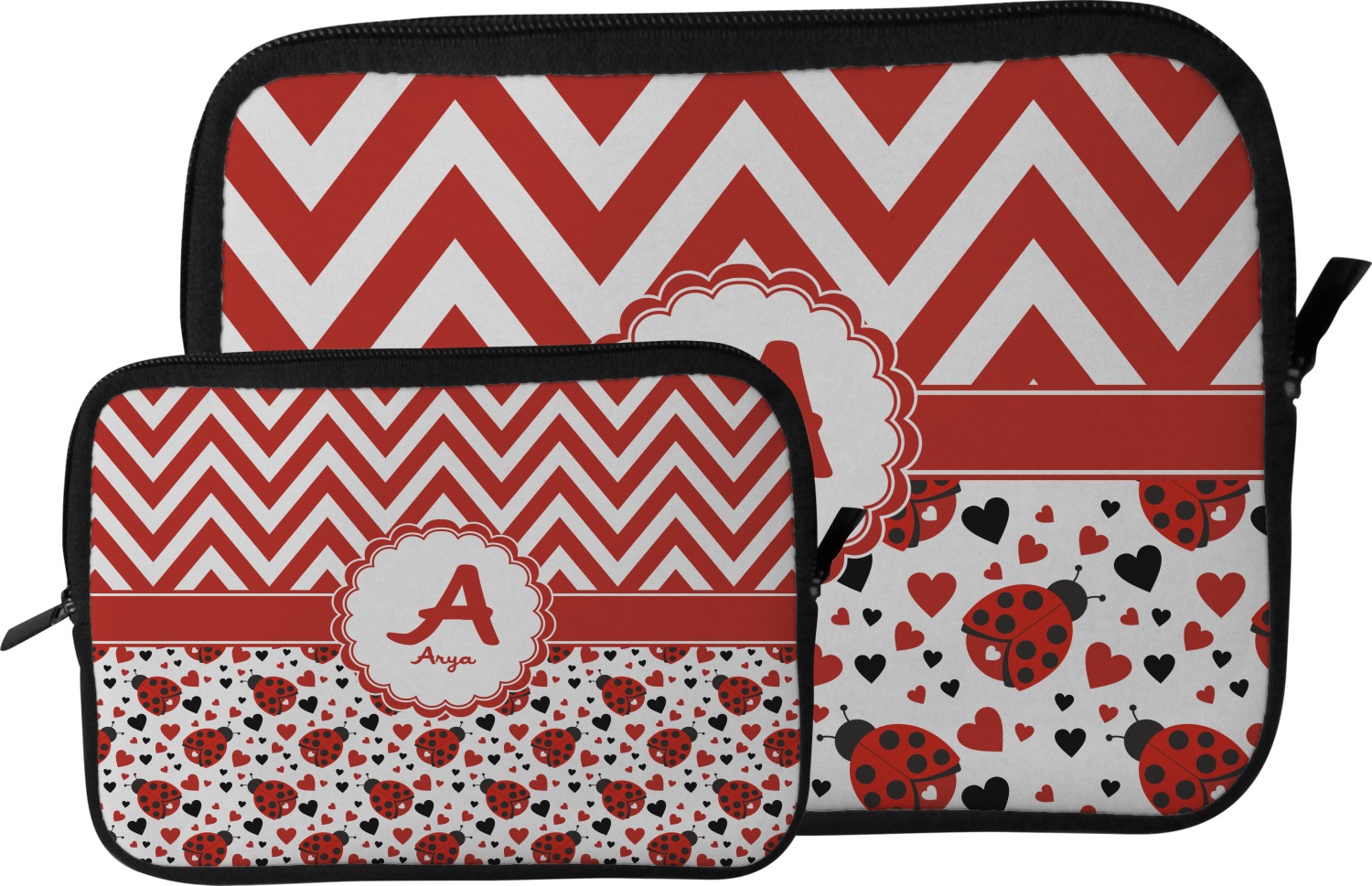 Ladybugs are traditional and loved by all. We have taken the classic ladybug and modernized her to give her an all new vibe. Chevron is the new go to pattern. We have created this gorgeous and bold red and white chevron pattern on top but grounded this bold pattern with our sweet little heart ladybugs. Old meets new and it goes so well together.