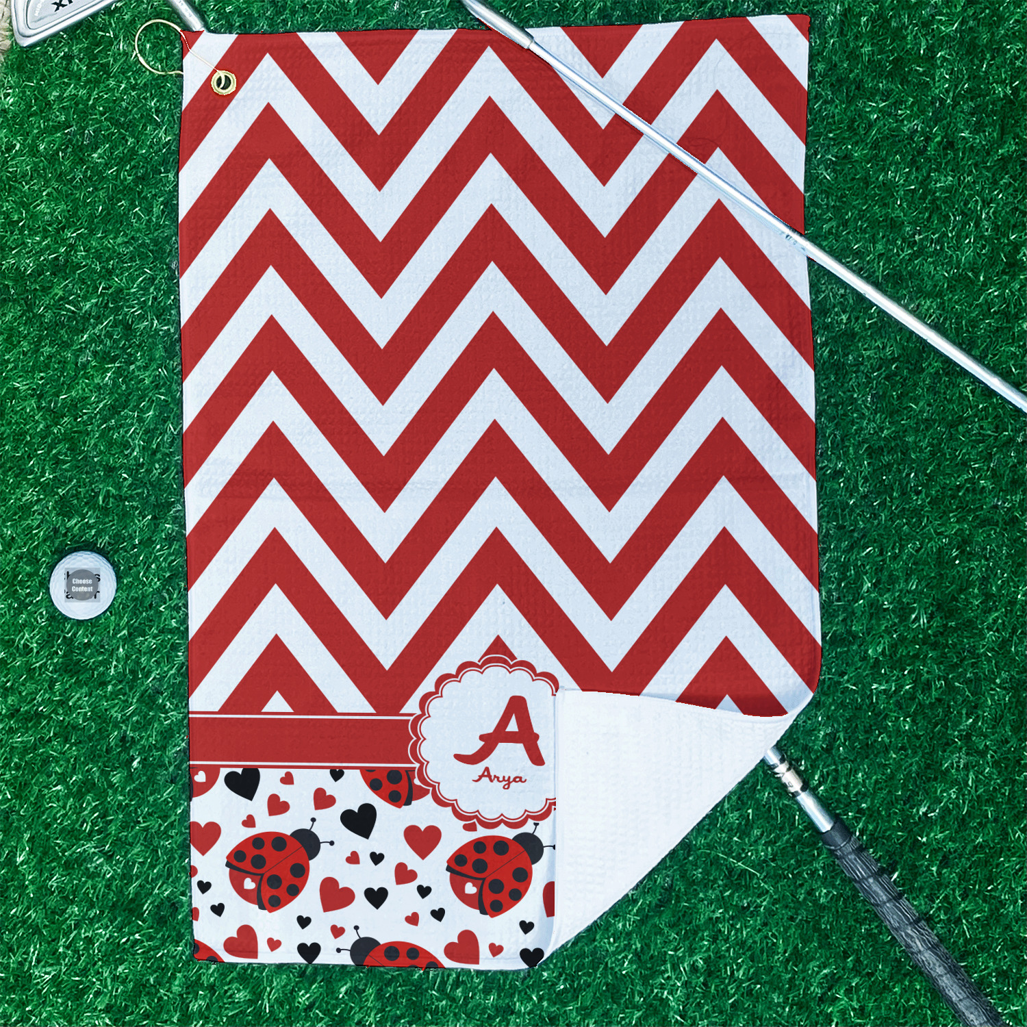 Trying to choose which golf towel is right for you? Our standard golf bag towel (one size - 13" x 18") is a terry loop style towel with a partial print that is great for normal, everyday use. If you are looking for a poly-cotton blend full print towel look at our standard full print golf towel - available in 2 sizes - small (11" x 18") and large (15" x 25"). If you prefer the look and feel of a soft microfiber towel our microfiber golf towels are a great option and allow you to polish your club and ball surfaces to a nice sheen. The microfiber golf towels are also available in 2 sizes - small (11" x 18") and large (15" x 25"). Lastly the waffle weave towel (available in a single size - 16" x 24") is a fantastic option to give you some texture on your towel to allow for more scrubbing and cleaning when playing in rougher, wetter environments. All of these options are able to be washed with bleach to get them clean and will retain their bright colors.