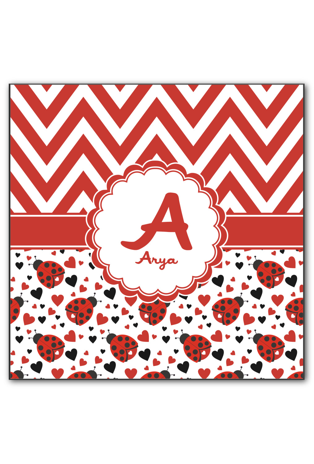 Ladybugs are traditional and loved by all. We have taken the classic ladybug and modernized her to give her an all new vibe. Chevron is the new go to pattern. We have created this gorgeous and bold red and white chevron pattern on top but grounded this bold pattern with our sweet little heart ladybugs. Old meets new and it goes so well together.