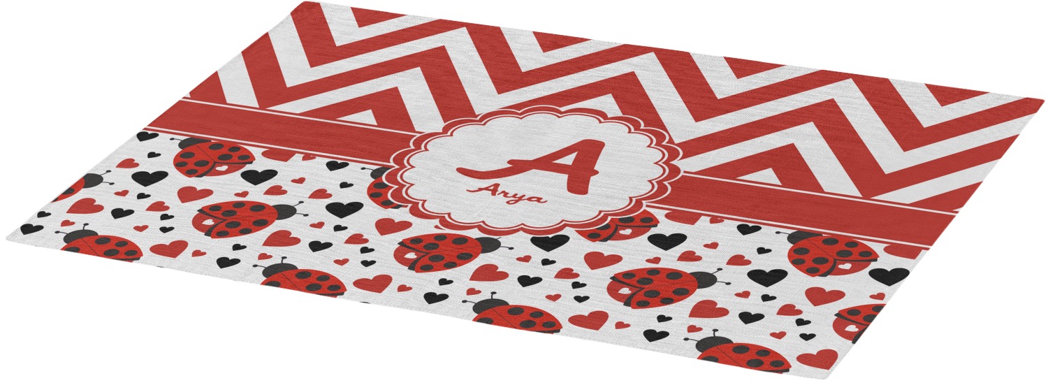 Each of our table mats are a poly twill material with woven burlap detailing. This creates a soft, quality placemat for us to fully print your personalized design across. The woven twill also adds a wrinkle-free surface to set your table! Each customizable placemat is a rectangle shape measuring at approximately 13 x 18 and printed here in the USA.