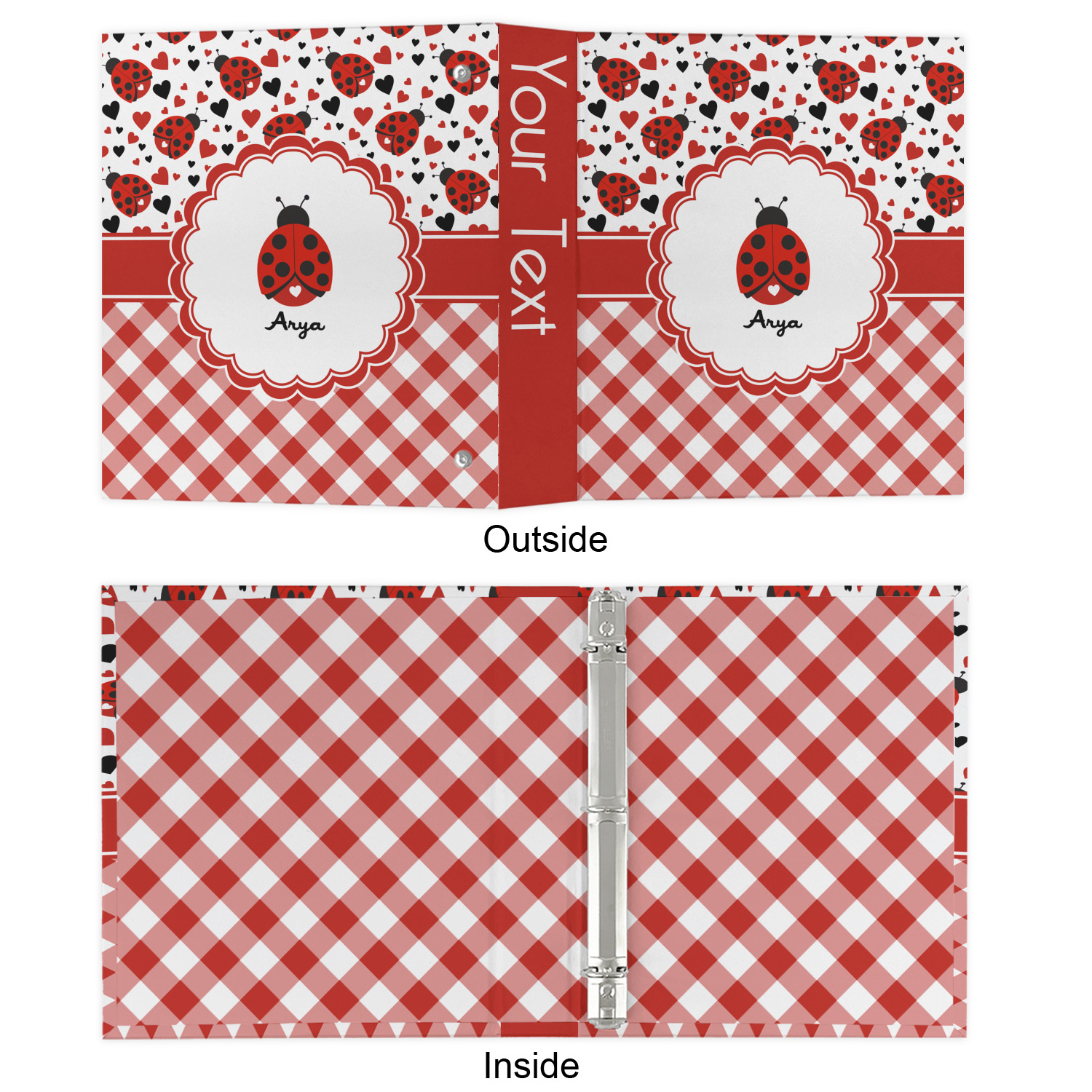 The outside is printed in 3 sections - front cover, spine and back cover - while the inside is printed in a full single print of your choice. The inside boasts a high quality nickel plated binder mechanism with a trigger opening function and is secured to the cardboard binder with posts and screws.