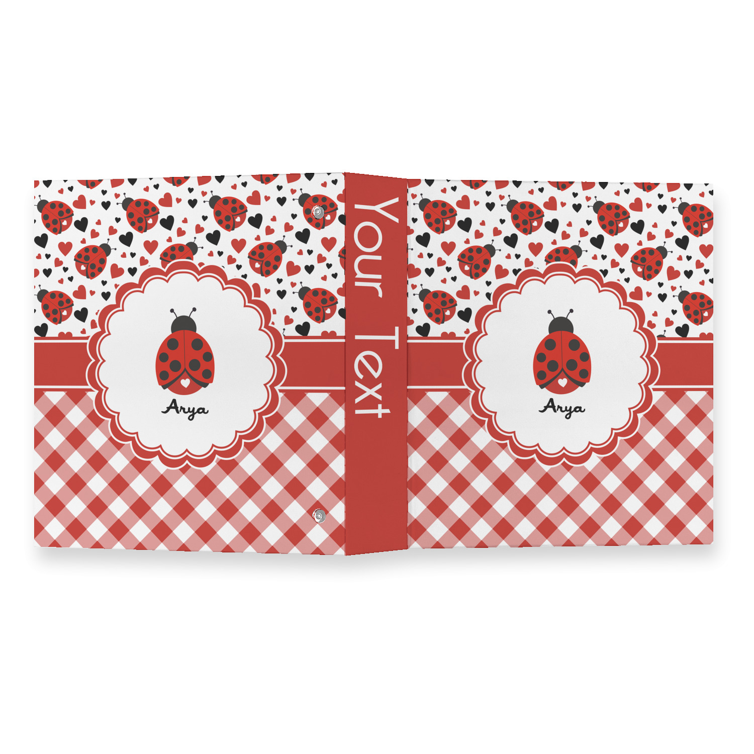 Ladybugs stand for luck so why not start your day off surrounded by the symbol of luck? On the top part of the design our little ladybugs are surrounded by coordinating black and red hearts. As if the ladybugs weren't sweet enough we added a touch of nostalgia by including the all American red and white gingham pattern to the bottom of this wonderful and warm design.