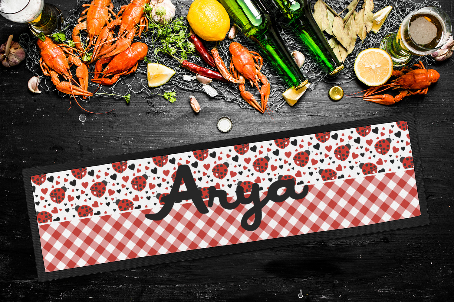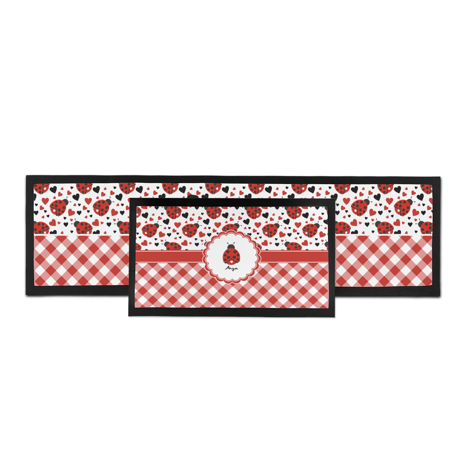 Ladybugs stand for luck so why not start your day off surrounded by the symbol of luck? On the top part of the design our little ladybugs are surrounded by coordinating black and red hearts. As if the ladybugs weren't sweet enough we added a touch of nostalgia by including the all American red and white gingham pattern to the bottom of this wonderful and warm design.