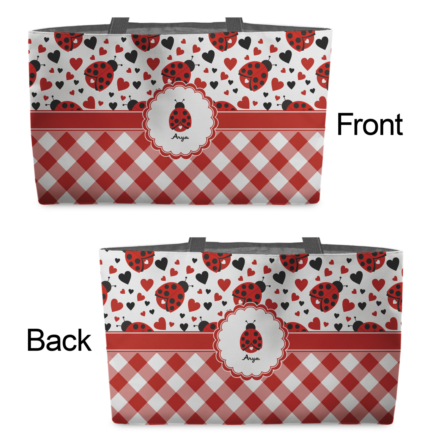You can design the totes with a design on the front and another one on the back. The two designs can be identical or completely different. The choice is yours.