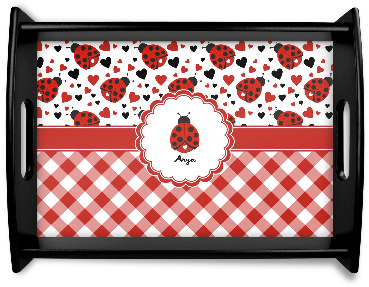 Ladybugs stand for luck so why not start your day off surrounded by the symbol of luck? On the top part of the design our little ladybugs are surrounded by coordinating black and red hearts. As if the ladybugs weren't sweet enough we added a touch of nostalgia by including the all American red and white gingham pattern to the bottom of this wonderful and warm design.
