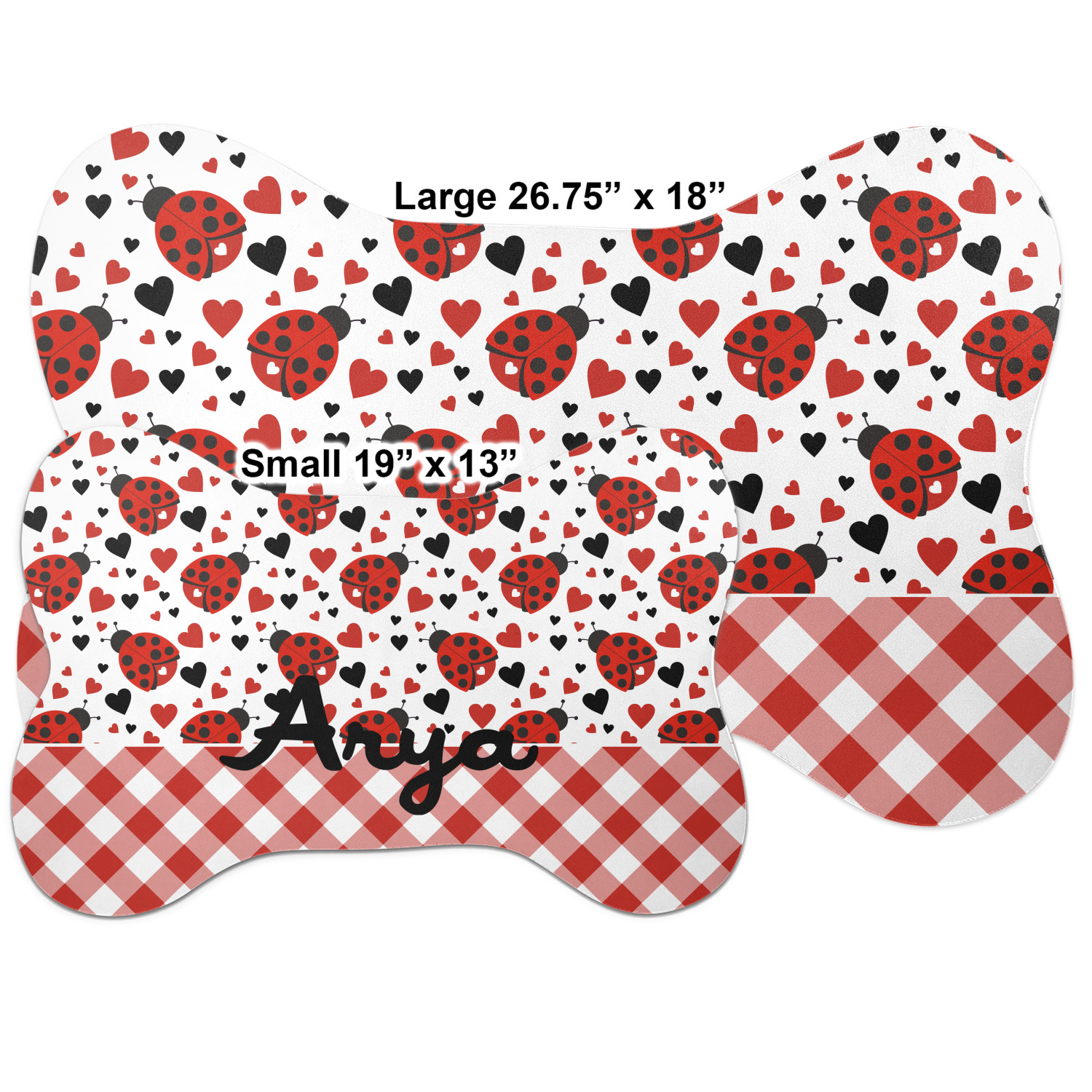 Ladybugs stand for luck so why not start your day off surrounded by the symbol of luck? On the top part of the design our little ladybugs are surrounded by coordinating black and red hearts. As if the ladybugs weren't sweet enough we added a touch of nostalgia by including the all American red and white gingham pattern to the bottom of this wonderful and warm design.