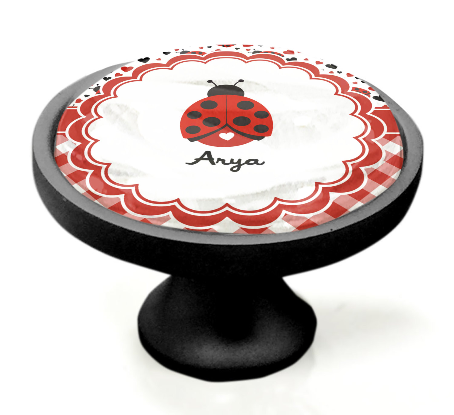 We sell these cabinet pulls in two different colors to better match your room's color scheme. We offer an oil-rubbed bronze base that is black in color, and a satin nickel option, which has a silver color. Your design is displayed across a high gloss vinyl insert that is placed on top of these cabinet handles. We then place a 1 inch thick glass cabochon atop the design, which seals the cabinet knob and makes the colors of your customization stand out. These custom cabinet knobs are approximately 1.3 inches in diameter. Your purchase includes a 1 inch screw that can be used to mount the knob to any cabinet in your home.