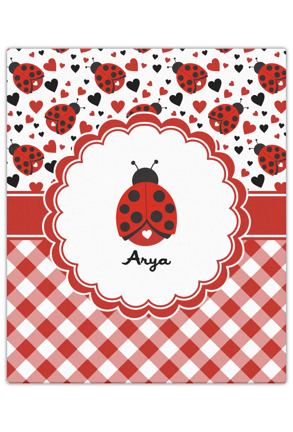 Ladybugs stand for luck so why not start your day off surrounded by the symbol of luck? On the top part of the design our little ladybugs are surrounded by coordinating black and red hearts. As if the ladybugs weren't sweet enough we added a touch of nostalgia by including the all American red and white gingham pattern to the bottom of this wonderful and warm design.