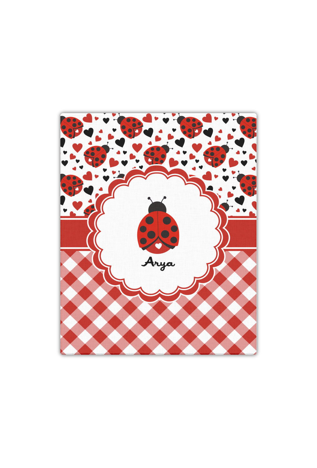 Ladybugs stand for luck so why not start your day off surrounded by the symbol of luck? On the top part of the design our little ladybugs are surrounded by coordinating black and red hearts. As if the ladybugs weren't sweet enough we added a touch of nostalgia by including the all American red and white gingham pattern to the bottom of this wonderful and warm design.