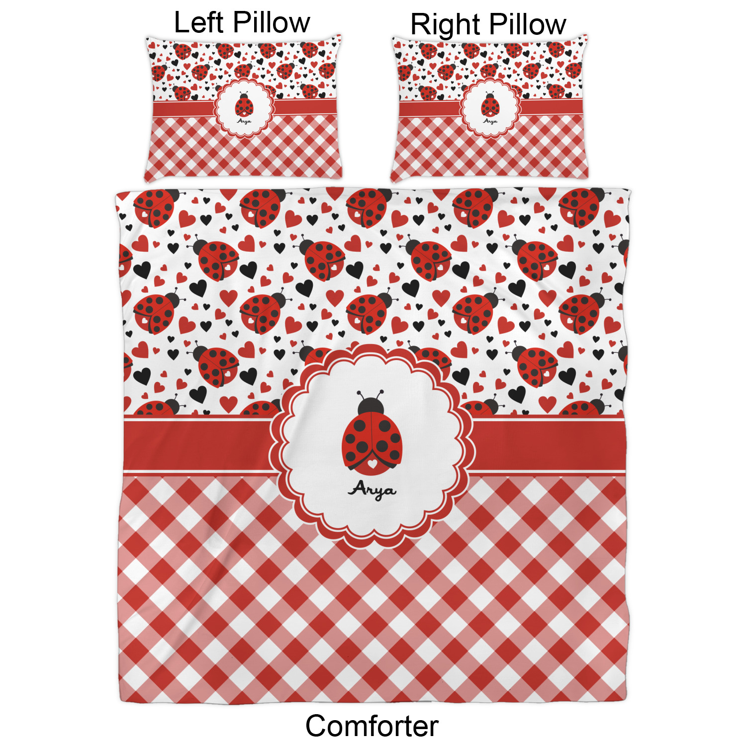 Ladybugs stand for luck so why not start your day off surrounded by the symbol of luck? On the top part of the design our little ladybugs are surrounded by coordinating black and red hearts. As if the ladybugs weren't sweet enough we added a touch of nostalgia by including the all American red and white gingham pattern to the bottom of this wonderful and warm design.