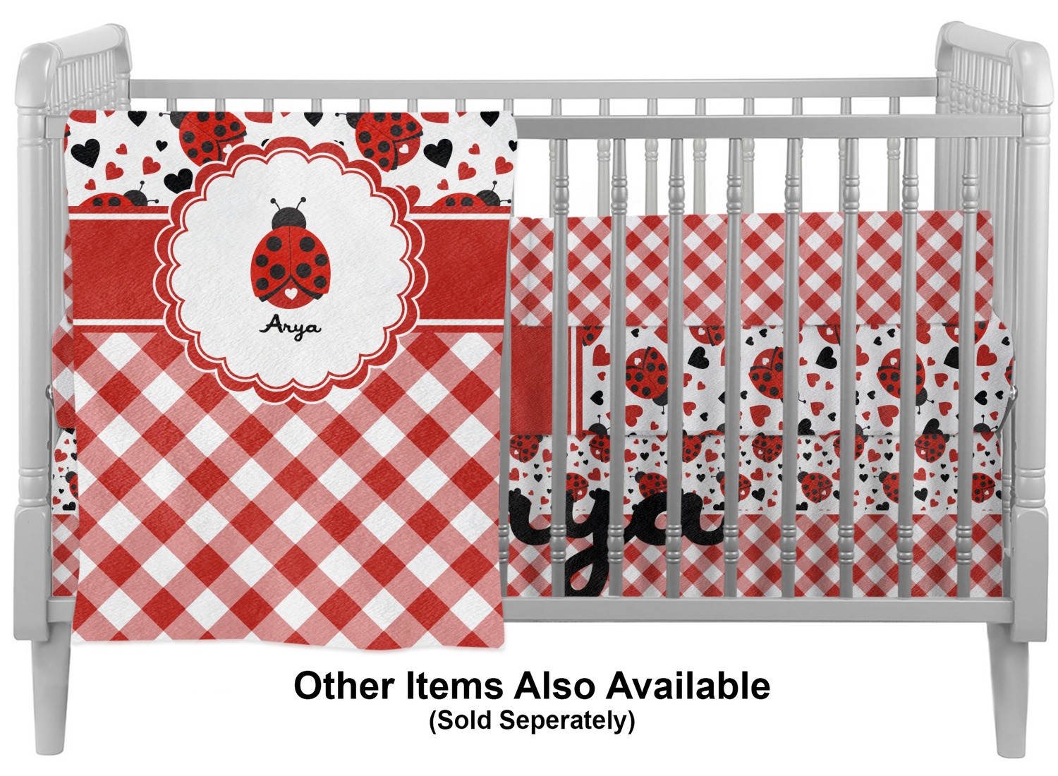 Ladybugs stand for luck so why not start your day off surrounded by the symbol of luck? On the top part of the design our little ladybugs are surrounded by coordinating black and red hearts. As if the ladybugs weren't sweet enough we added a touch of nostalgia by including the all American red and white gingham pattern to the bottom of this wonderful and warm design.