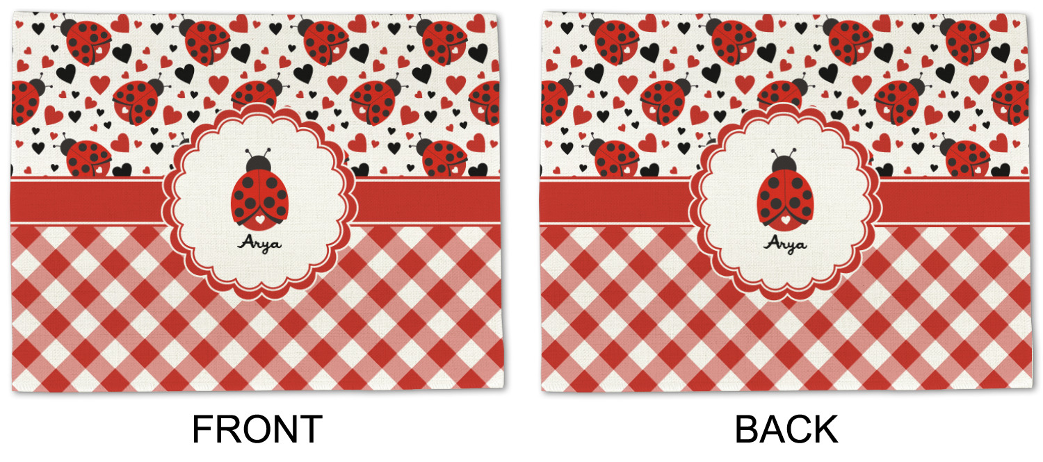 Ladybugs stand for luck so why not start your day off surrounded by the symbol of luck? On the top part of the design our little ladybugs are surrounded by coordinating black and red hearts. As if the ladybugs weren't sweet enough we added a touch of nostalgia by including the all American red and white gingham pattern to the bottom of this wonderful and warm design.