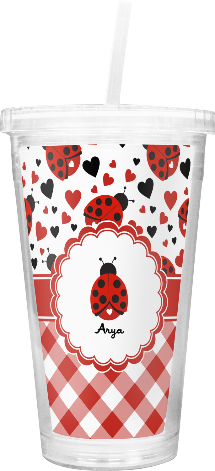 These tumblers are customized for you with a printed insert between the two walls of the cup. The lid screws on tight and helps to keep your drink cold.