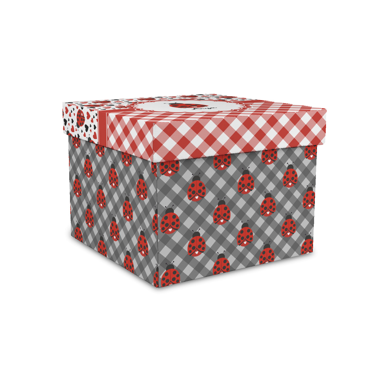 Ladybugs stand for luck so why not start your day off surrounded by the symbol of luck? On the top part of the design our little ladybugs are surrounded by coordinating black and red hearts. As if the ladybugs weren't sweet enough we added a touch of nostalgia by including the all American red and white gingham pattern to the bottom of this wonderful and warm design.