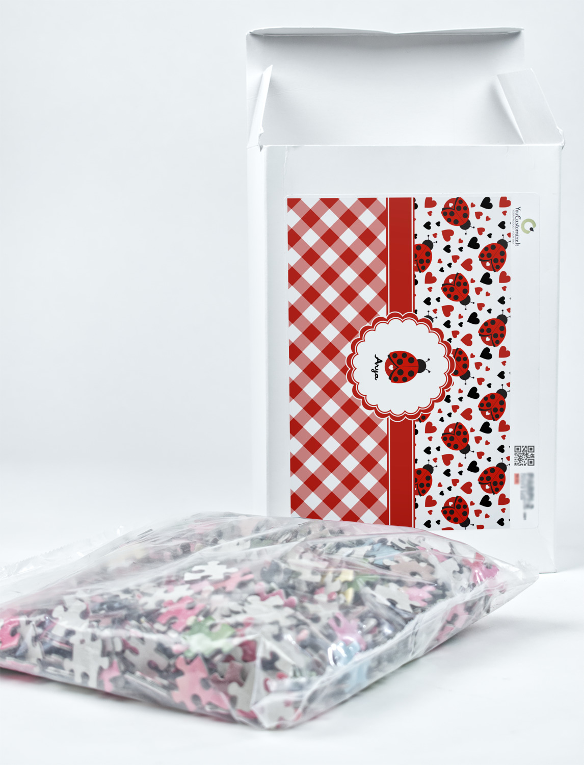You can also upload your logo or art that you or your kids drew. To create more challenging jigsaw puzzles, you can create a pattern from with your logo or artwork. You can also add other elements such as text or personalization.