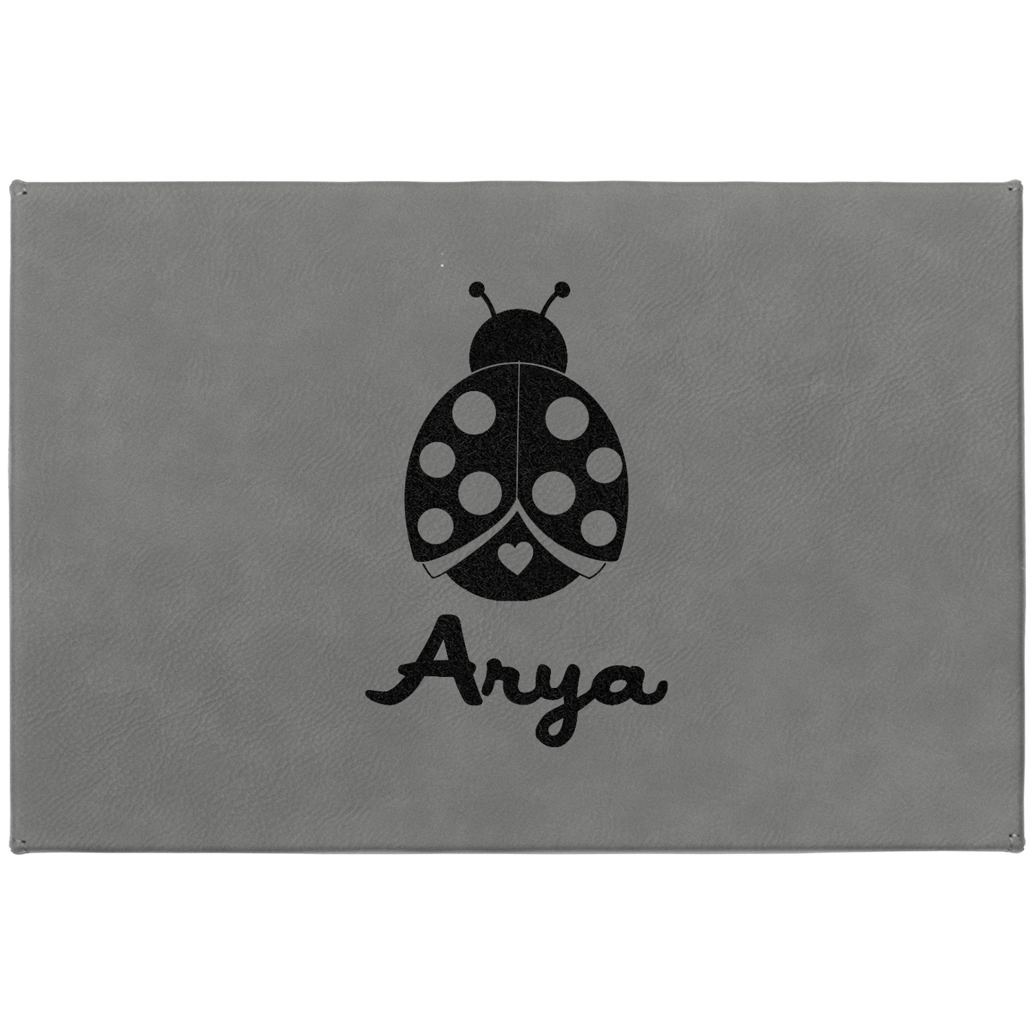 A wide band of red with an inset of black trim pulls the design together. A cute ladybug sits in the middle of a white scalloped circle label that is trimmed in double rows of red. Under the ladybug is ample room for custom personalization.