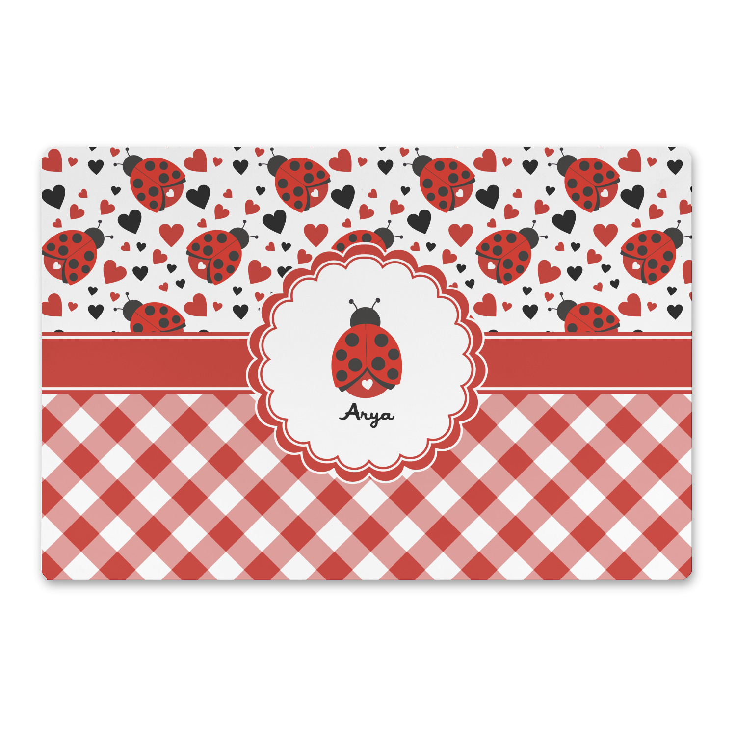 Ladybugs stand for luck so why not start your day off surrounded by the symbol of luck? On the top part of the design our little ladybugs are surrounded by coordinating black and red hearts. As if the ladybugs weren't sweet enough we added a touch of nostalgia by including the all American red and white gingham pattern to the bottom of this wonderful and warm design.