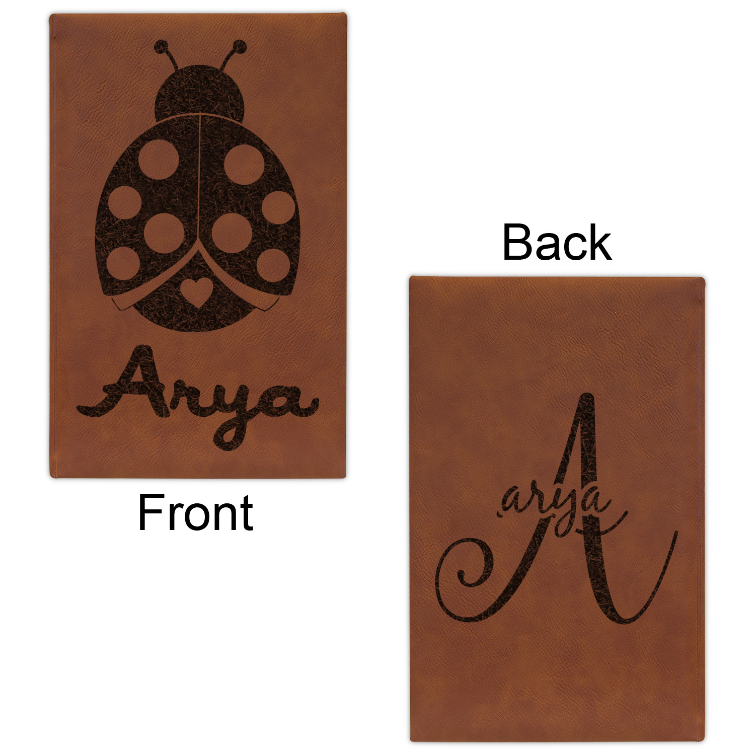 The faux leather covers are a rich cognac / rawhide color and can be customized with your design. From a simple name or monogram or a logo to a detailed mandala - the choice for customization & personalization is truly yours. Customize one of our designs or upload your own.