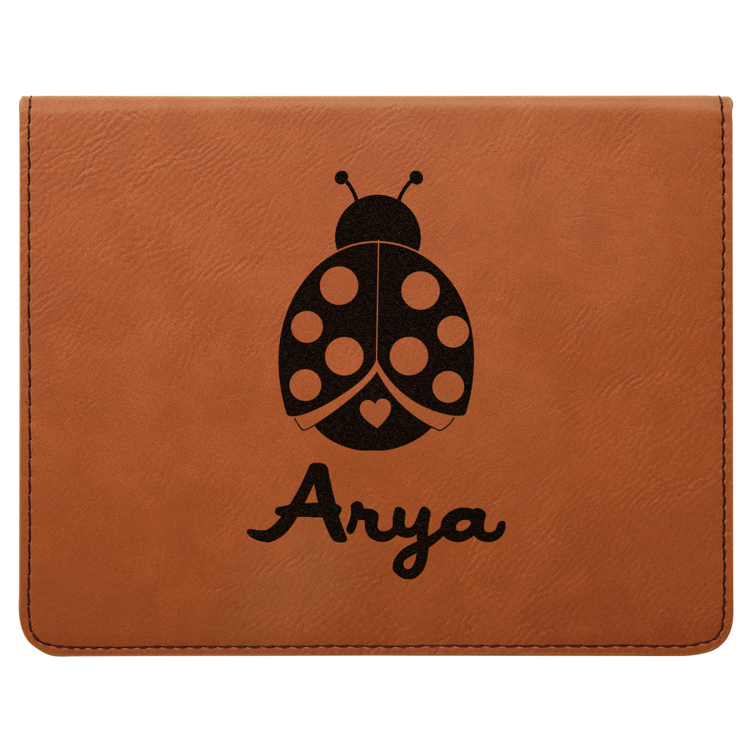 A wide band of red with an inset of black trim pulls the design together. A cute ladybug sits in the middle of a white scalloped circle label that is trimmed in double rows of red. Under the ladybug is ample room for custom personalization.