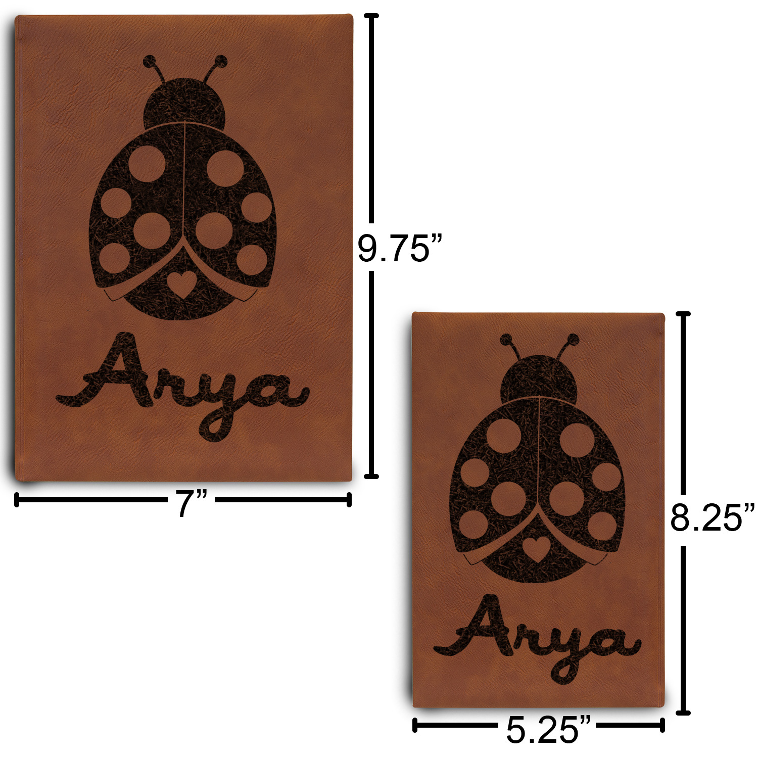 Available in two sizes - small at 8.25" x 5.25" and large at 9.75" x 7", these journal are the ideal size for purses and backpacks alike. Your personalized design is precisely laser engraved onto either the front, or the front and back of your new custom journal.