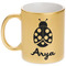 Our custom mugs are ceramic, which is great for keeping your tea or coffee warm! We offer two metallic mugs to personalize - Silver or Gold. Both styles hold around 11oz and have dimensions of approximately 3.75" x 3.5" x 4.75". Both the metallic mugs come in a matte finish and have glitter detailing to add a more pristine feel to the gold and silver base colors.