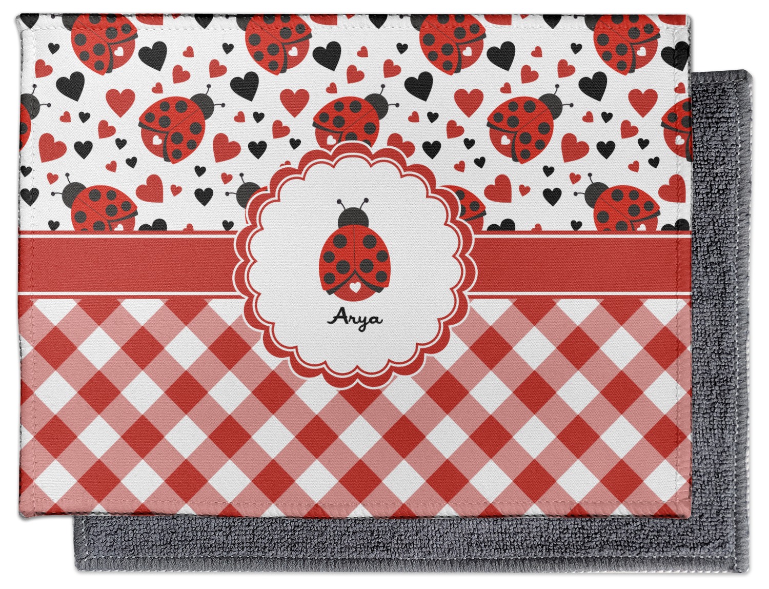 Ladybugs stand for luck so why not start your day off surrounded by the symbol of luck? On the top part of the design our little ladybugs are surrounded by coordinating black and red hearts. As if the ladybugs weren't sweet enough we added a touch of nostalgia by including the all American red and white gingham pattern to the bottom of this wonderful and warm design.