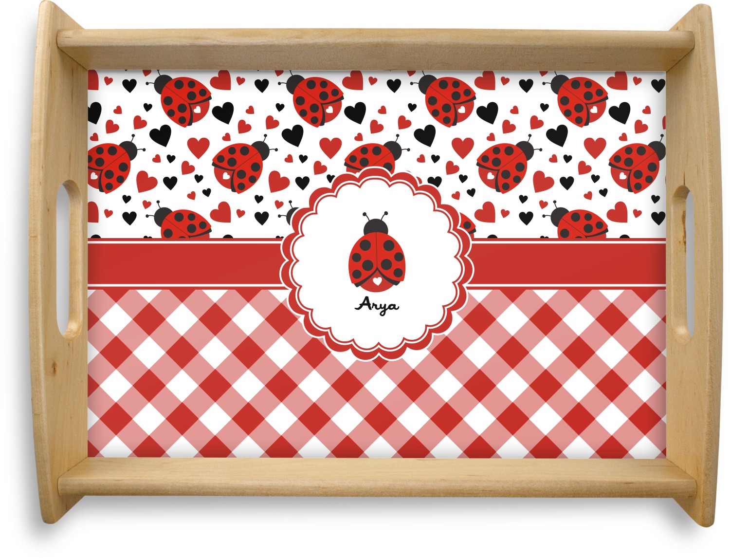 Ladybugs stand for luck so why not start your day off surrounded by the symbol of luck? On the top part of the design our little ladybugs are surrounded by coordinating black and red hearts. As if the ladybugs weren't sweet enough we added a touch of nostalgia by including the all American red and white gingham pattern to the bottom of this wonderful and warm design.