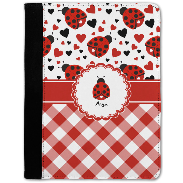 These personalized padfolios are made from a black, polyester microfiber and features a standard, 50-page notepad. However, these black padfolios can accommodate a pad with up to 100 pages. This model also features a slot pocket for any loose sheets of paper, small pockets for business cards, and an elastic band to secure a pen. We print your personalization across the front of this notepad portfolio in bright, vibrant color. These padfolios come in 2 sizes, Medium - approximately 10.25" x 8" for 5" x 8" paper and Large - approximately 12.5" x 8.5" for 8.5" x 11" paper.