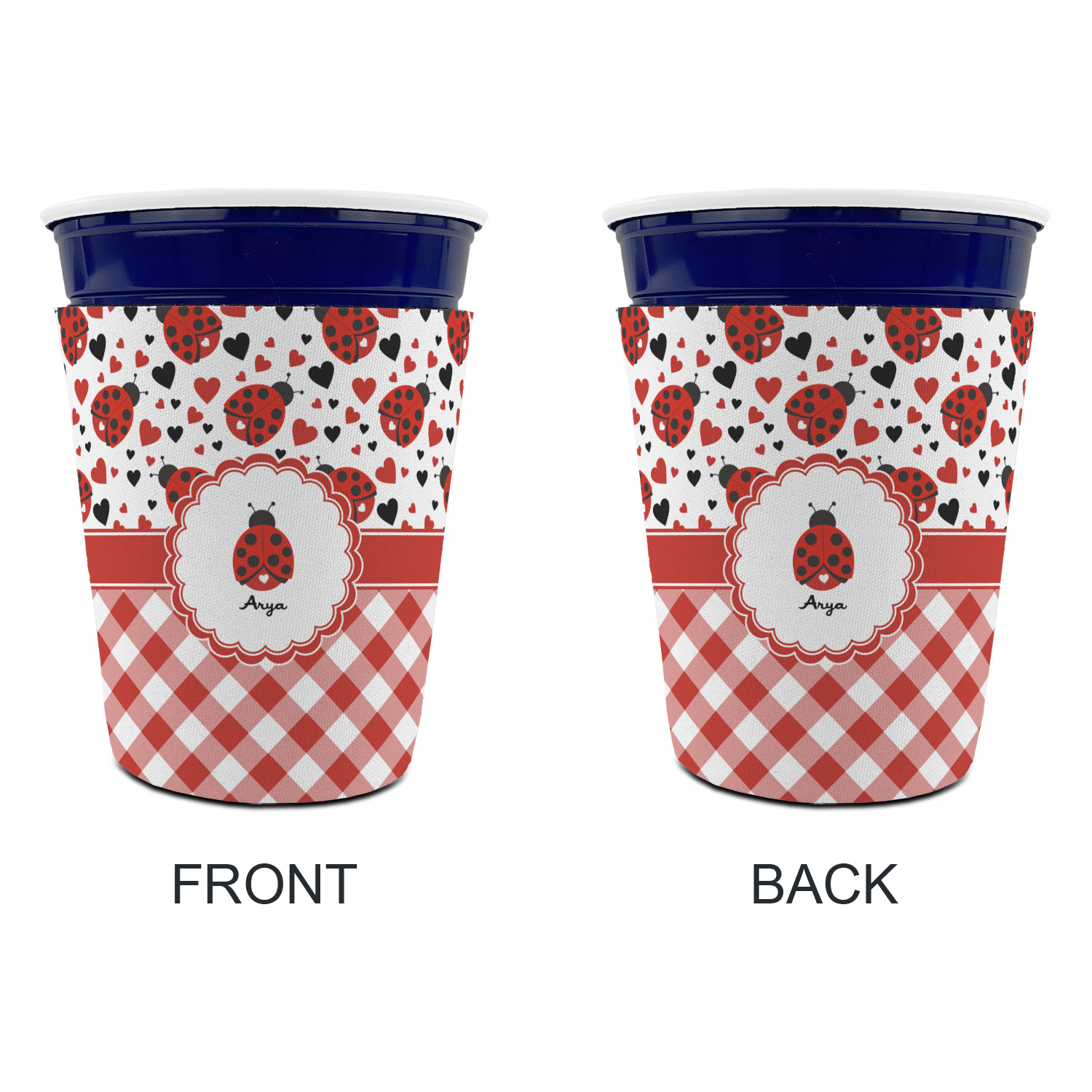 Made from neoprene with a polyester outer fabric and sewn seams, these premium quality party cup sleeves are very durable and will hold up to heavy use. They are available in 2 styles - with a bottom or just a sleeve to go around the outside of the tapered cup. The sleeve covers are about 4" tall and cover about 90% of the classic 16 oz. Solo cup.