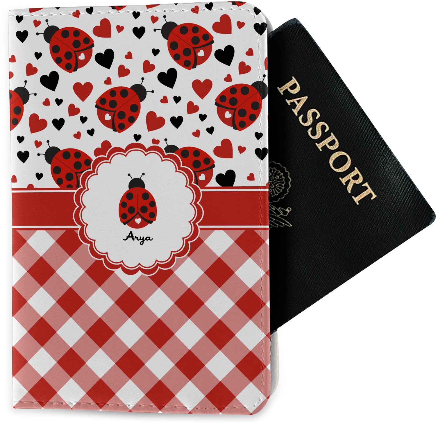 The passport holder has a beautiful inside made of faux leather, while the outside is a smooth slick vinyl like material printed with your personal design.