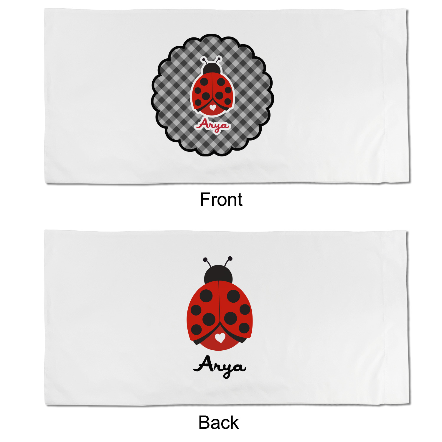 Ladybugs stand for luck so why not start your day off surrounded by the symbol of luck? On the top part of the design our little ladybugs are surrounded by coordinating black and red hearts. As if the ladybugs weren't sweet enough we added a touch of nostalgia by including the all American red and white gingham pattern to the bottom of this wonderful and warm design.