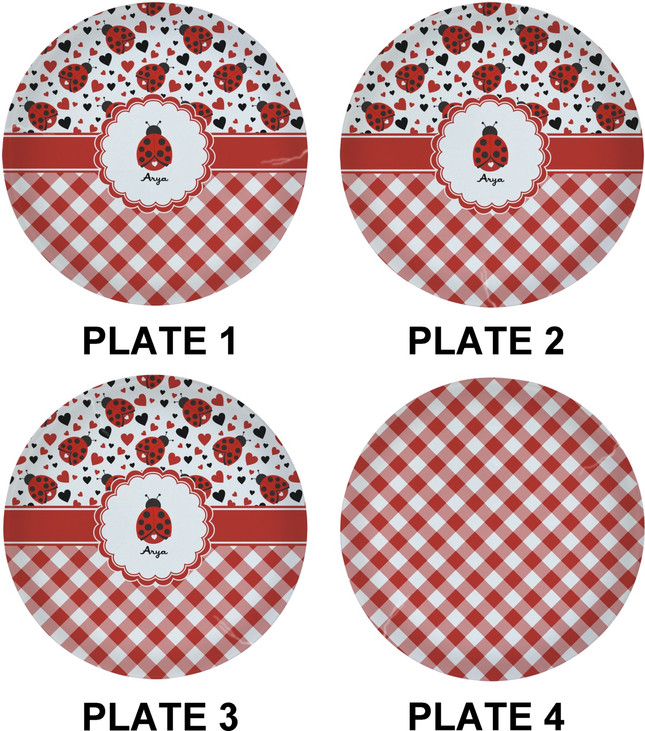 Ladybugs stand for luck so why not start your day off surrounded by the symbol of luck? On the top part of the design our little ladybugs are surrounded by coordinating black and red hearts. As if the ladybugs weren't sweet enough we added a touch of nostalgia by including the all American red and white gingham pattern to the bottom of this wonderful and warm design.