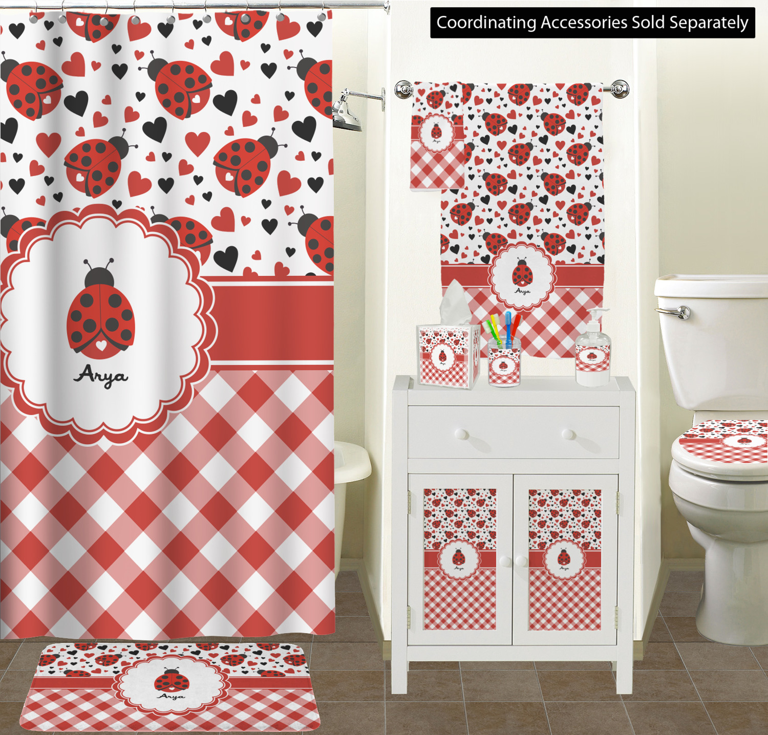 Ladybugs stand for luck so why not start your day off surrounded by the symbol of luck? On the top part of the design our little ladybugs are surrounded by coordinating black and red hearts. As if the ladybugs weren't sweet enough we added a touch of nostalgia by including the all American red and white gingham pattern to the bottom of this wonderful and warm design.