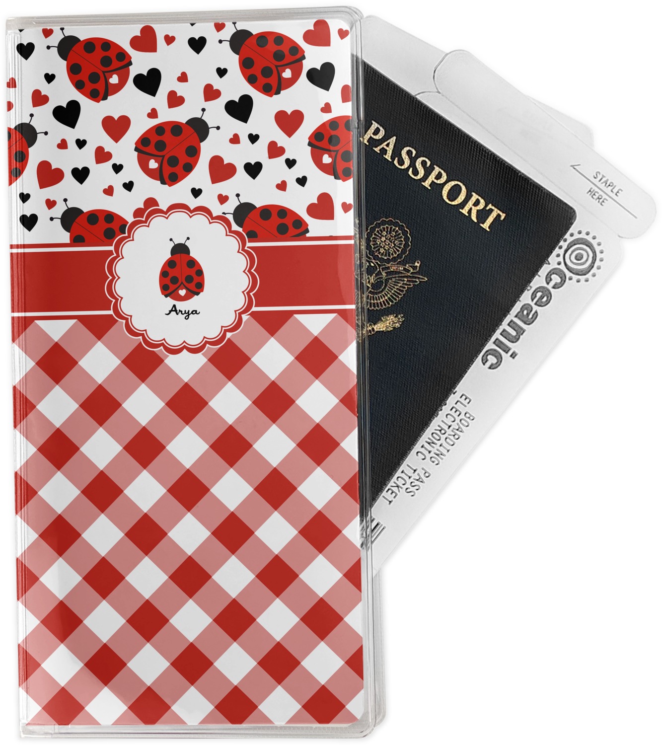 This document holder is really sturdy and has your personalized design inserted right behind all of your nifty pockets, so you can see it on the front and back covers. There are two large pockets and two shorter pockets inside. The larger pockets are tall enough to keep your boarding pass nice and straight. The smaller pockets (on top of the large pockets) are large enough to fit your passport, credit card, or ID.