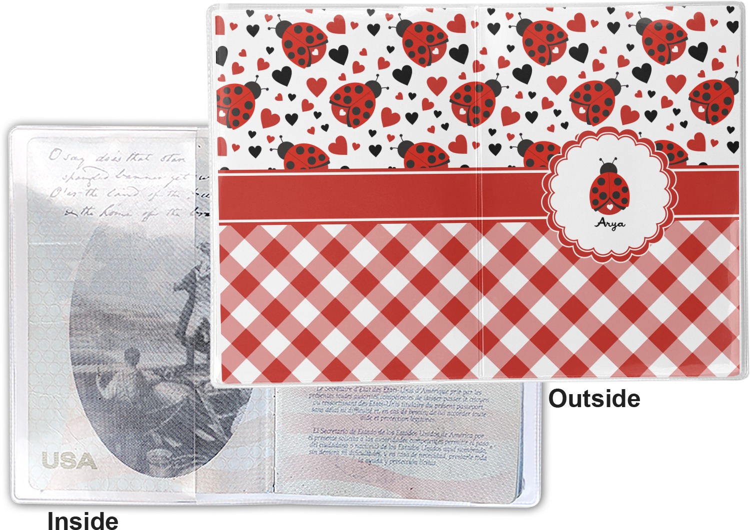 This cover is made of a sturdy clear vinyl with a personalized vinyl insert inside. There is a large and a small pocket on either side to hold the covers of your passport easily and firmly. The passport holder is approximately 7.5" x 5.25", the perfect size to snugly fit your passport. This slim cover is the perfect way to protect your passport without being one more bulky item you have to carry.